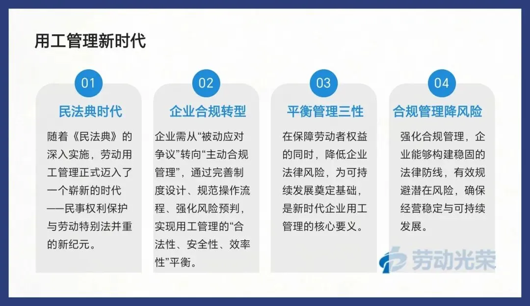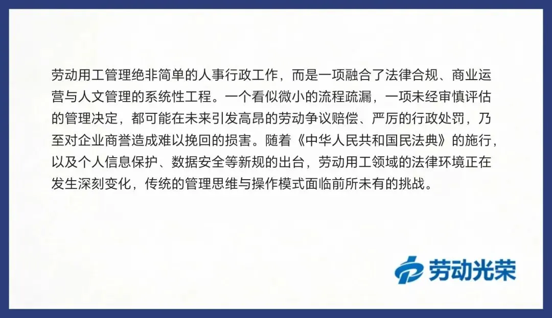 随着市场环境的不断变化和法律法规的日益完善,企业在劳动用工方面面临着越来越多的挑战和风险。这些风险可能来自于劳动合同的签订与履行、工时与休息休假、薪酬福利的支付、社会保险的缴纳、劳动关系的解除与终止等多个方面。一旦处理不当,不仅可能引发劳动纠纷,影响企业的正常运营,还可能损害企业的社会形象,甚至承担法律责任。