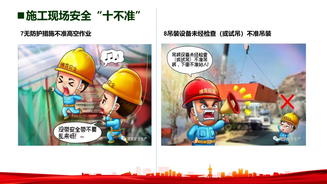 - 起重吊装:设备检验合格、指挥持证、信号统一、严禁超载。