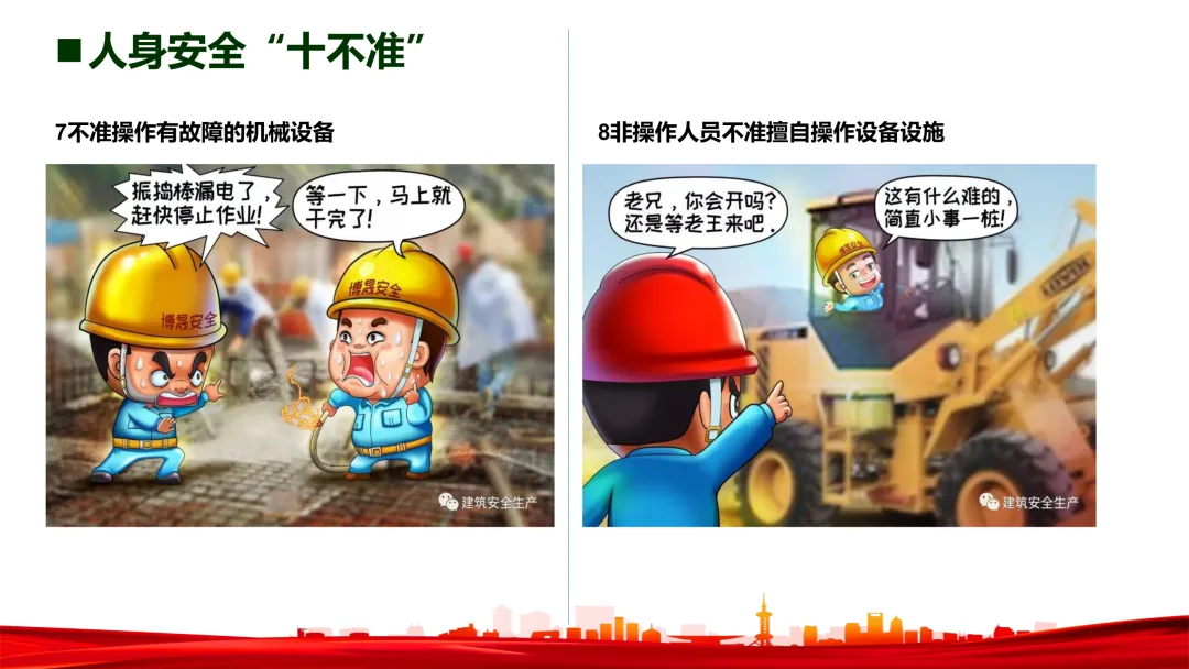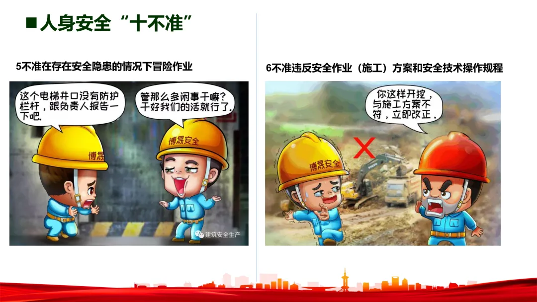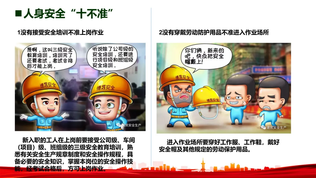 - 牢记三不原则:不违章指挥、不违章作业、不违反劳动纪律。