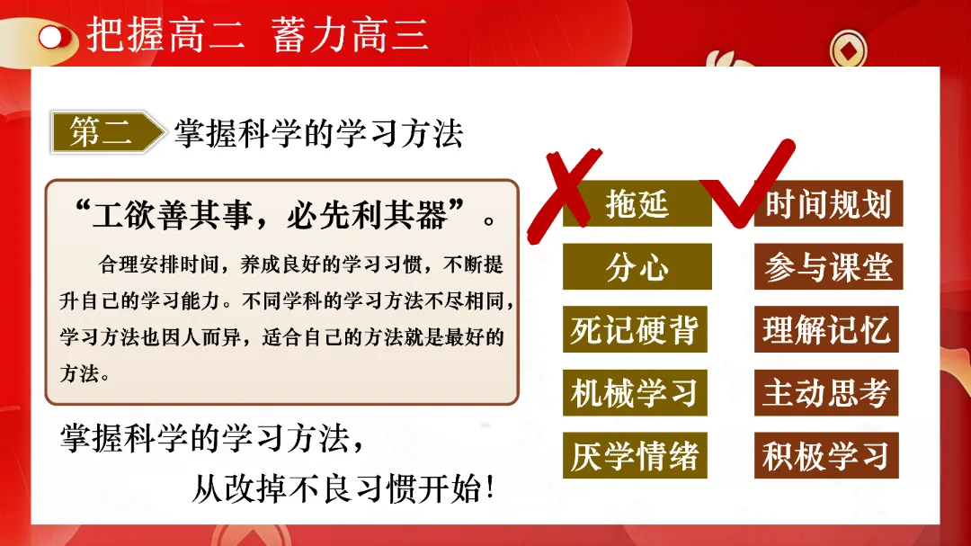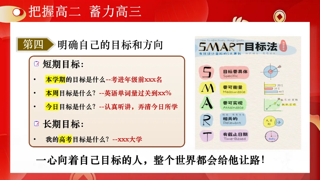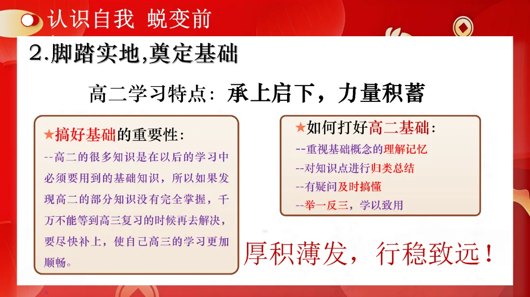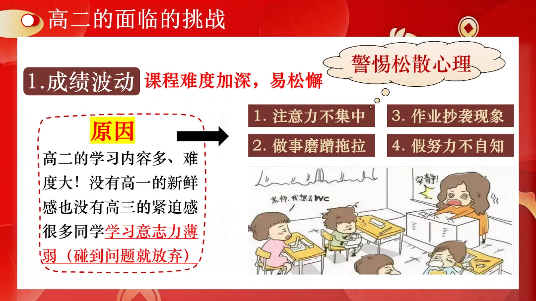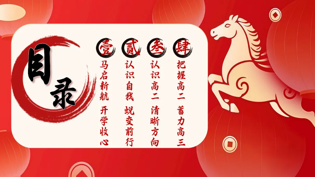 高二下学期开学第一课班会课件PPT:“马跃新程,逐梦前行”(电子版可编辑,课件+逐字稿),部分内容由PPT展示可见。