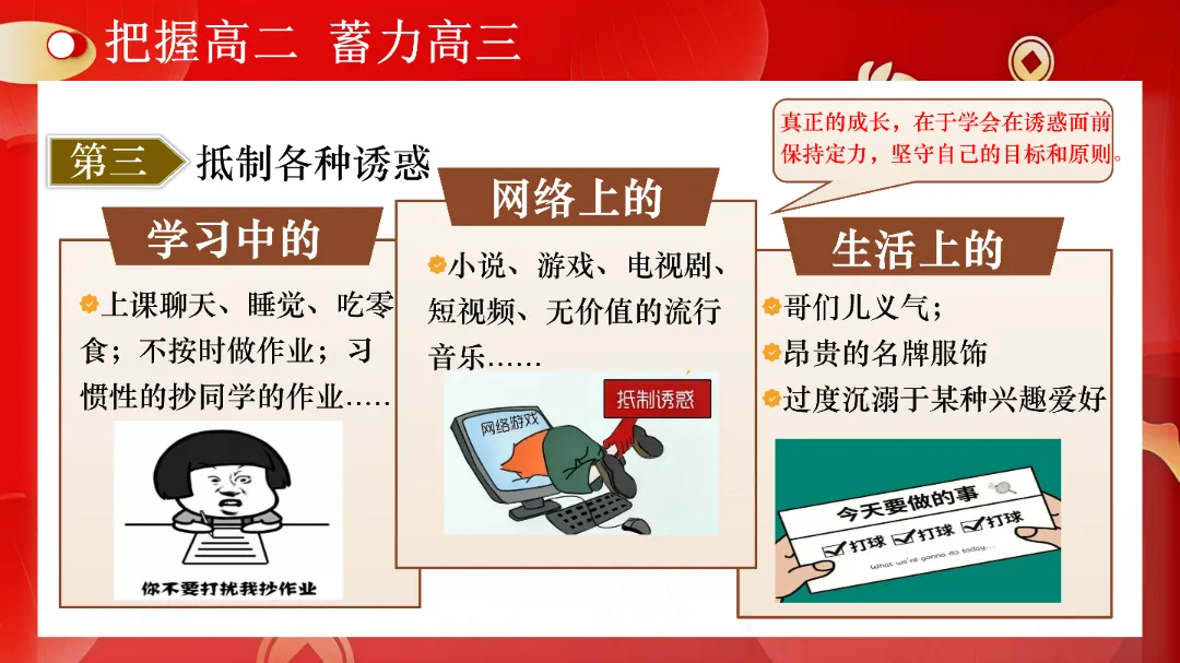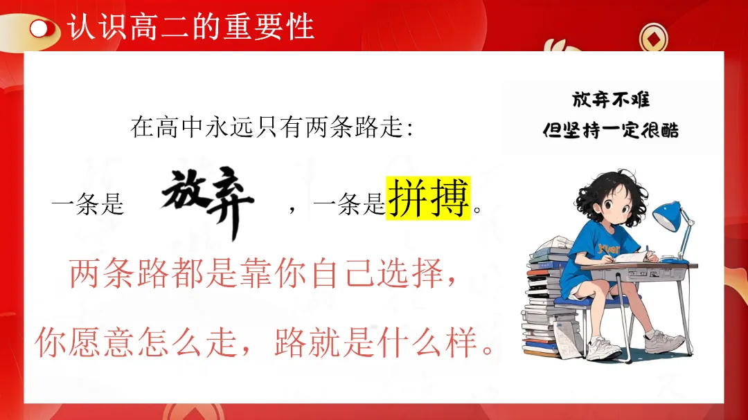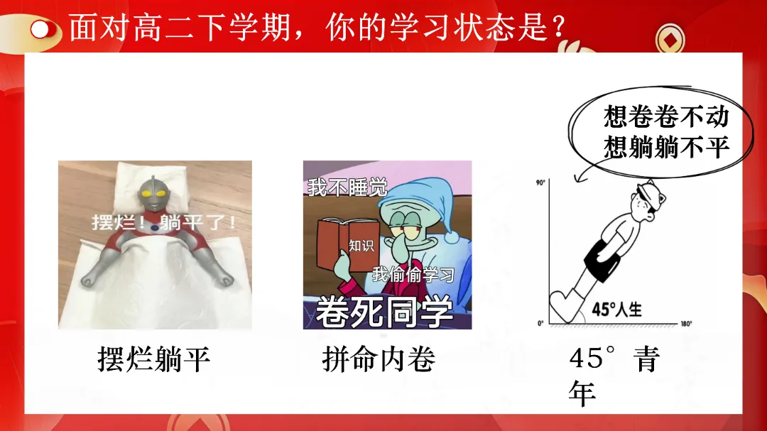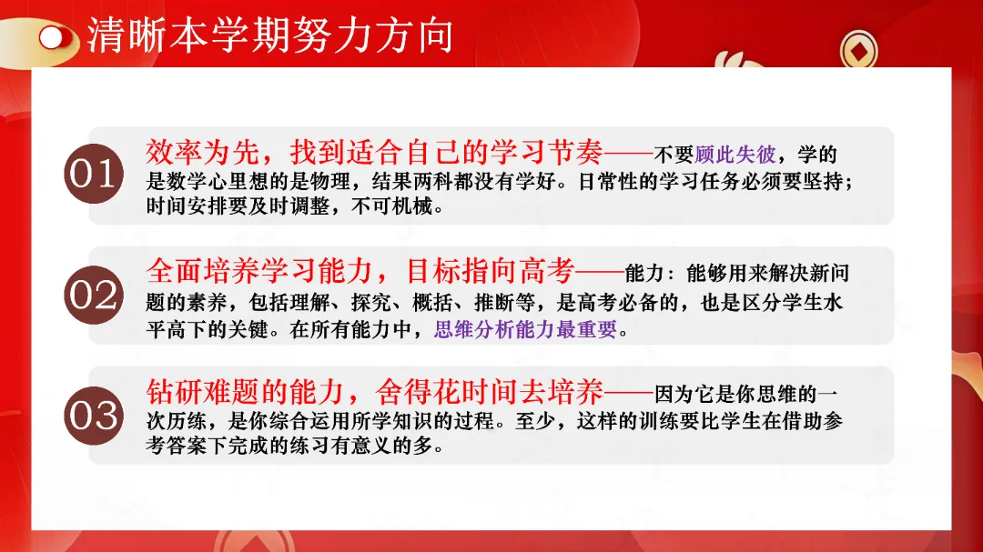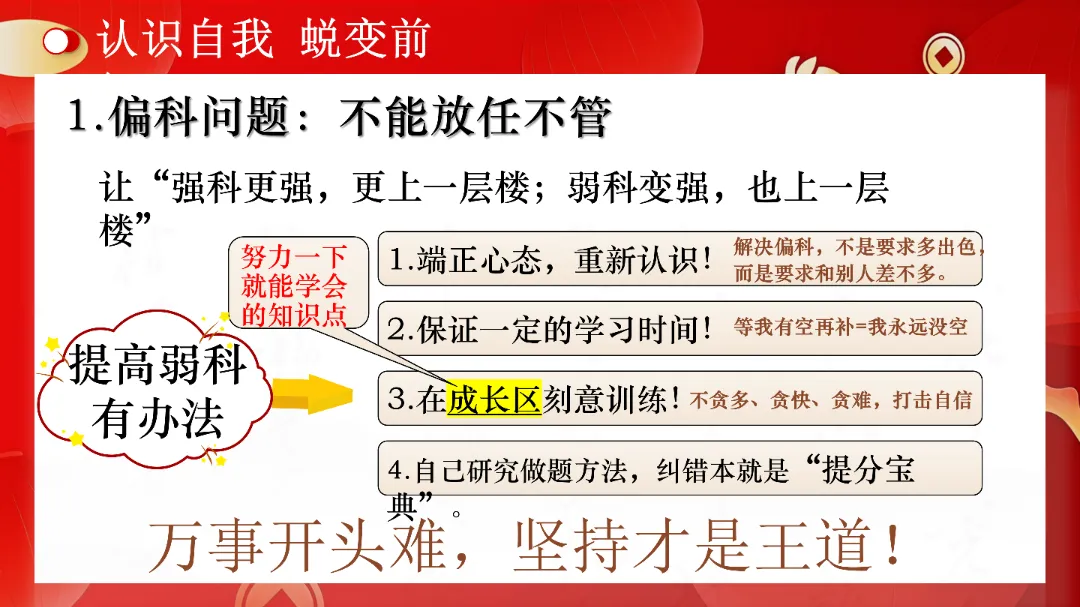 高二下学期开学第一课班会课件PPT:“马跃新程,逐梦前行”(电子版可编辑,课件+逐字稿),部分内容由PPT展示可见。