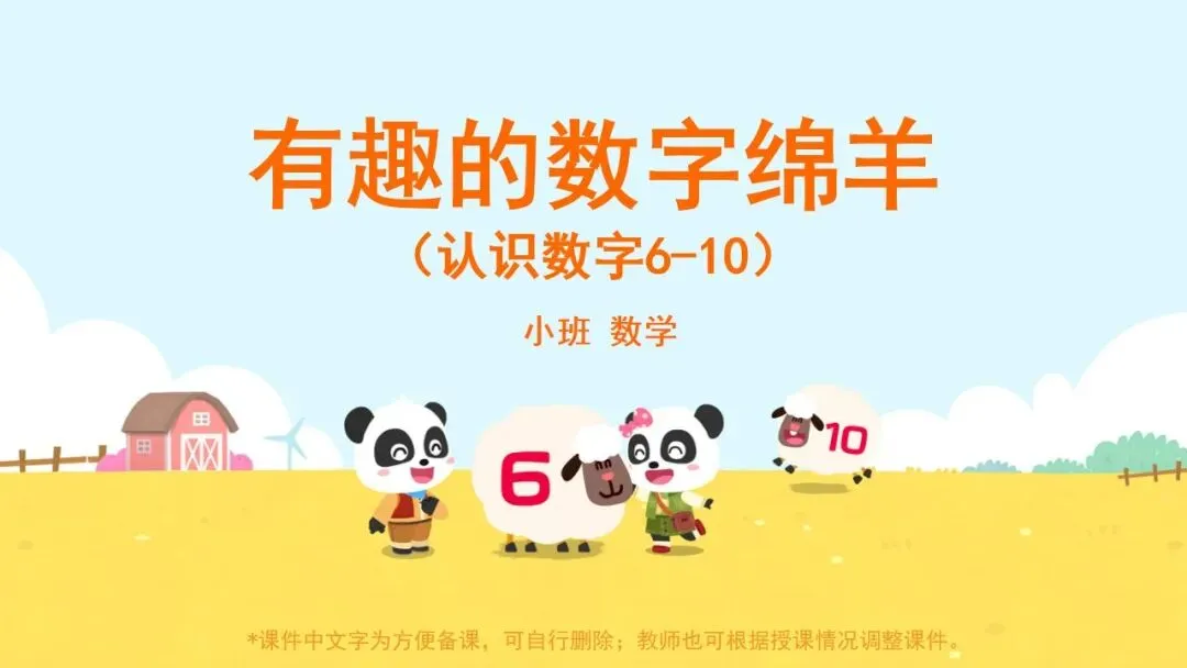 2.播放音频及图片“数字绵羊6-10”,引导幼儿认识数字6-10。