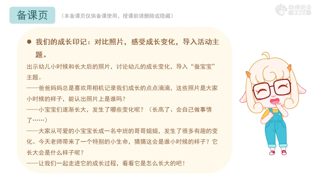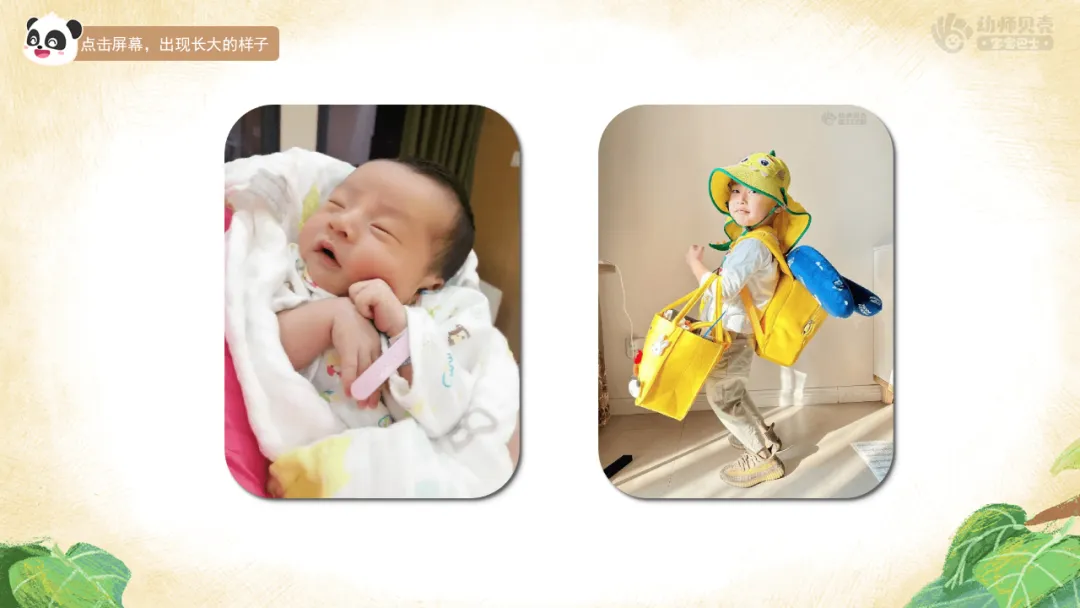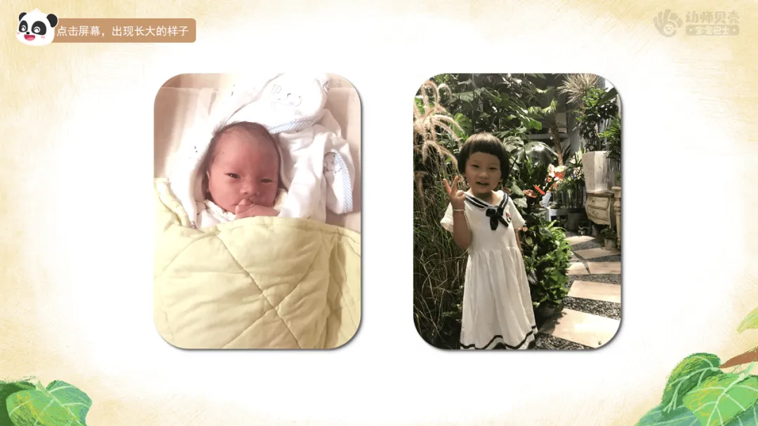 l我们的成长印记:对比照片,感受成长变化,导入活动主题。