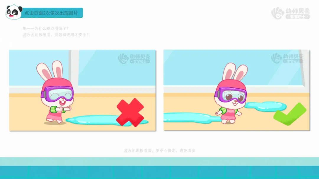 ——兔一一为什么差点滑倒了?游泳区地板很湿,要怎样走路才安全?