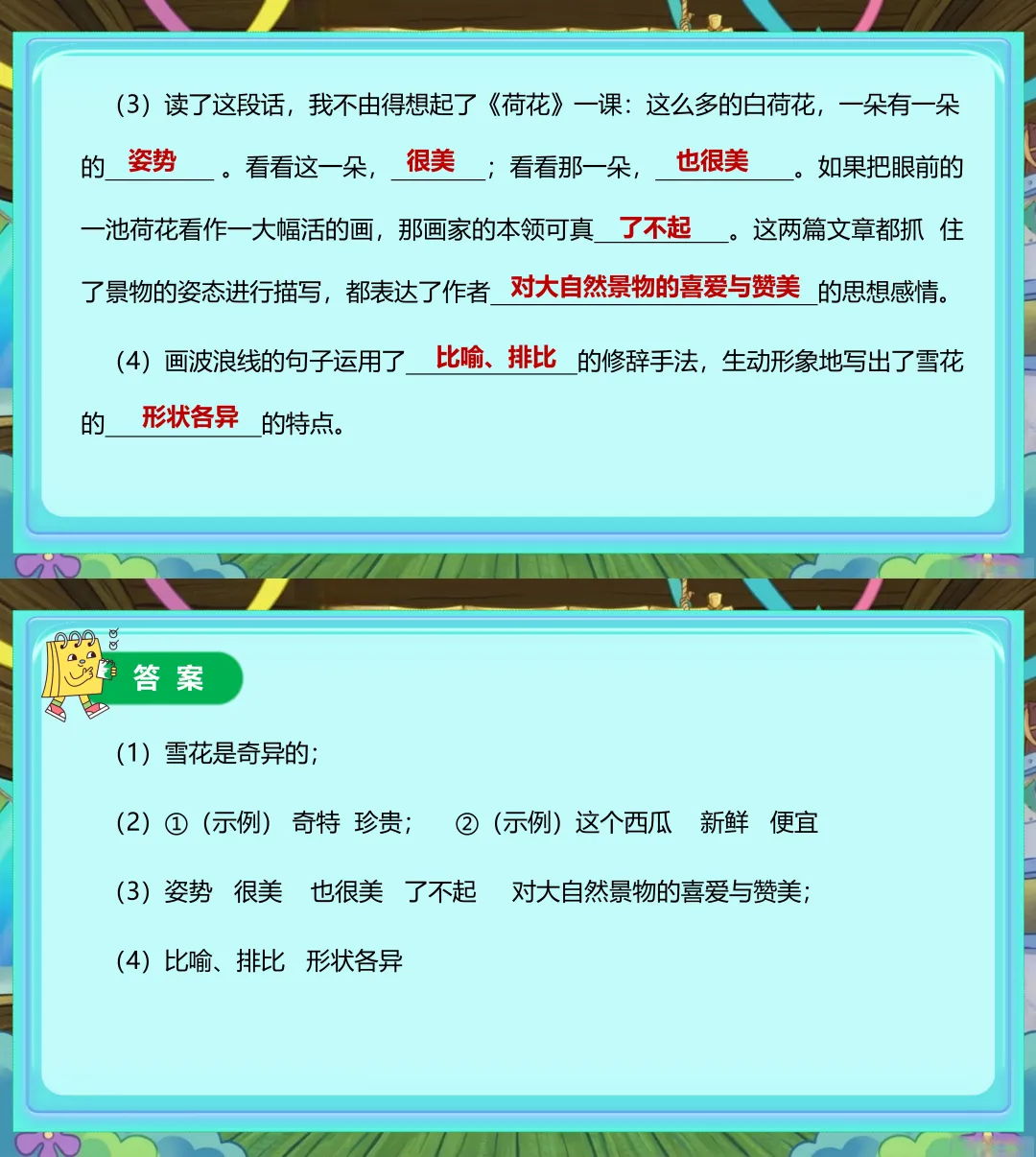 四年级下册阅读理解答题模板精美课件~