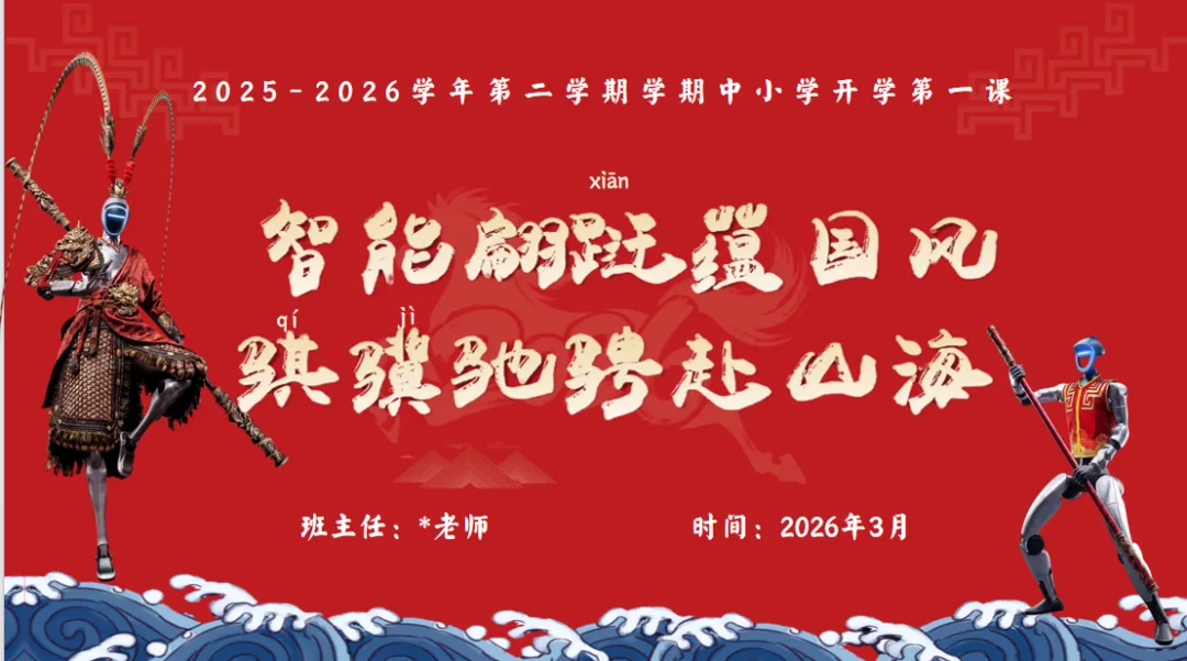 教育是一场双向奔赴的成长,开学第一课更是新学期班级育人的重要起点。愿各位班主任以马年 “骐骥驰骋、笃行不怠” 的精神为引,用趣味拉近距离,用耐心引导收心,用规则筑牢根基,用目标点亮方向,让课堂既有温度又有力量。在新的学期里,愿我们携手同行,做学生成长路上的引路人、陪伴者,与孩子们一起以梦为马,共赴山海,在教书育人的征途上,一路生花,马到功成!