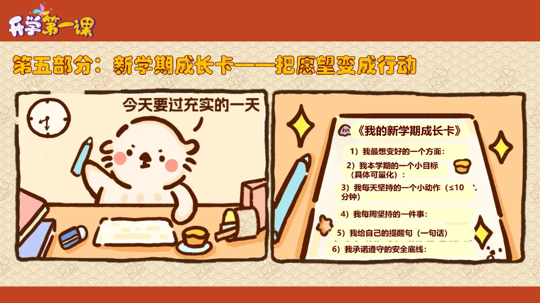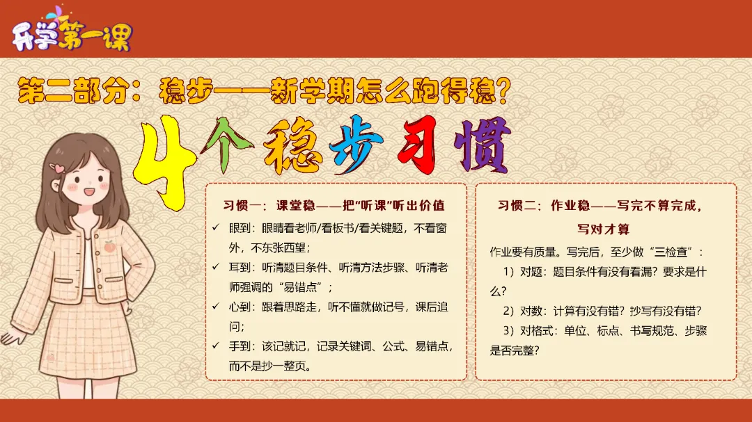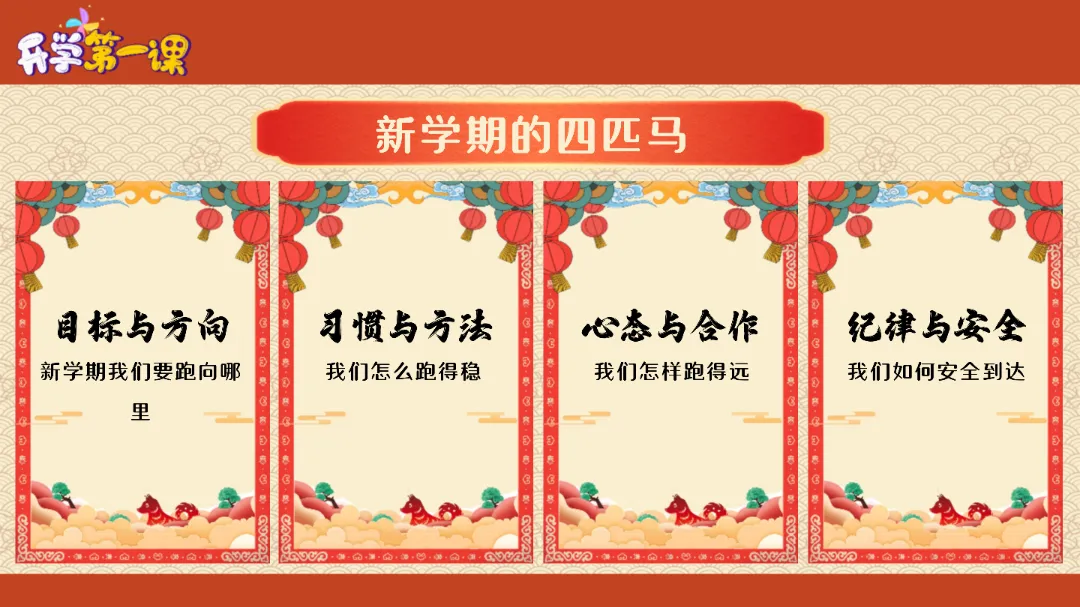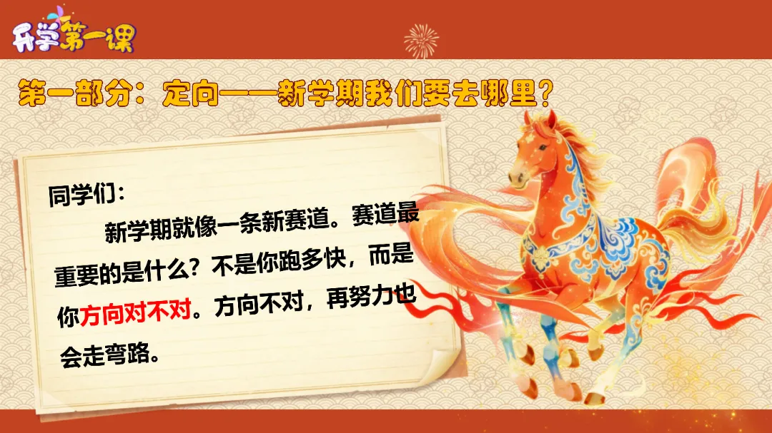 开学第一课主题班会课件PPT:“乘马年之风,向成长出发”(电子版可编辑,课件+逐字稿),部分内容由PPT展示可见。