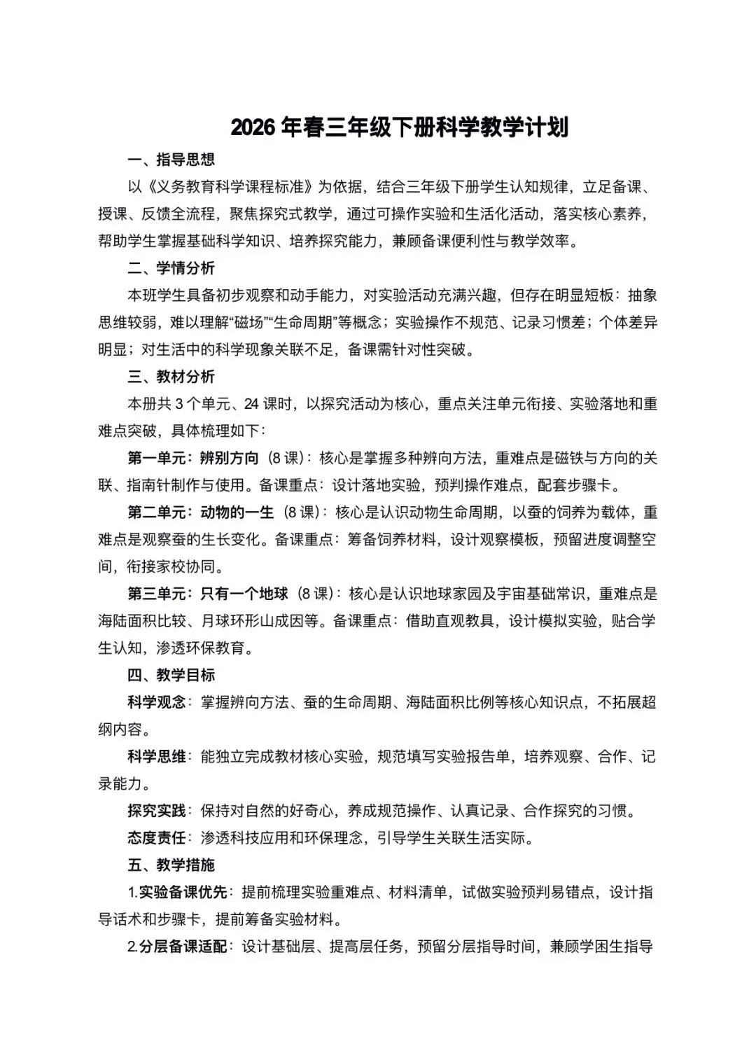>2026春三年级科学下册教科版课件ppt+教案+教学计划+随堂练习