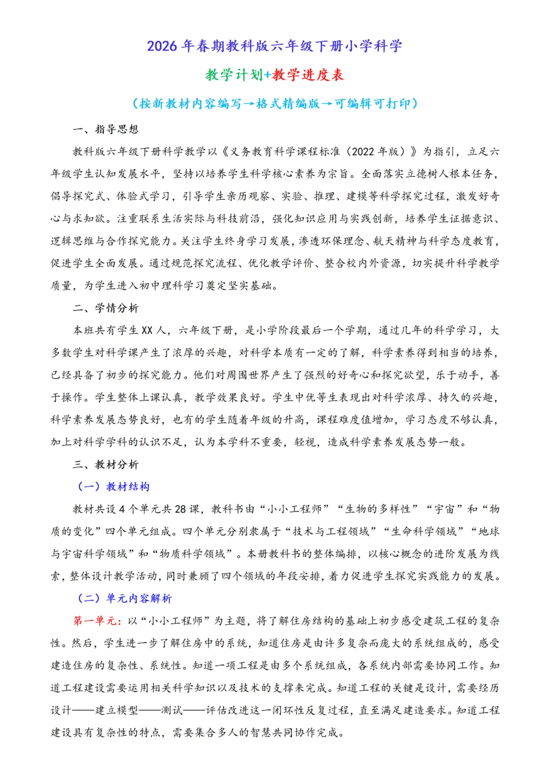 2026年春《六年级下册科学课件+教案+教学计划资料合集》电子版可编辑可打印