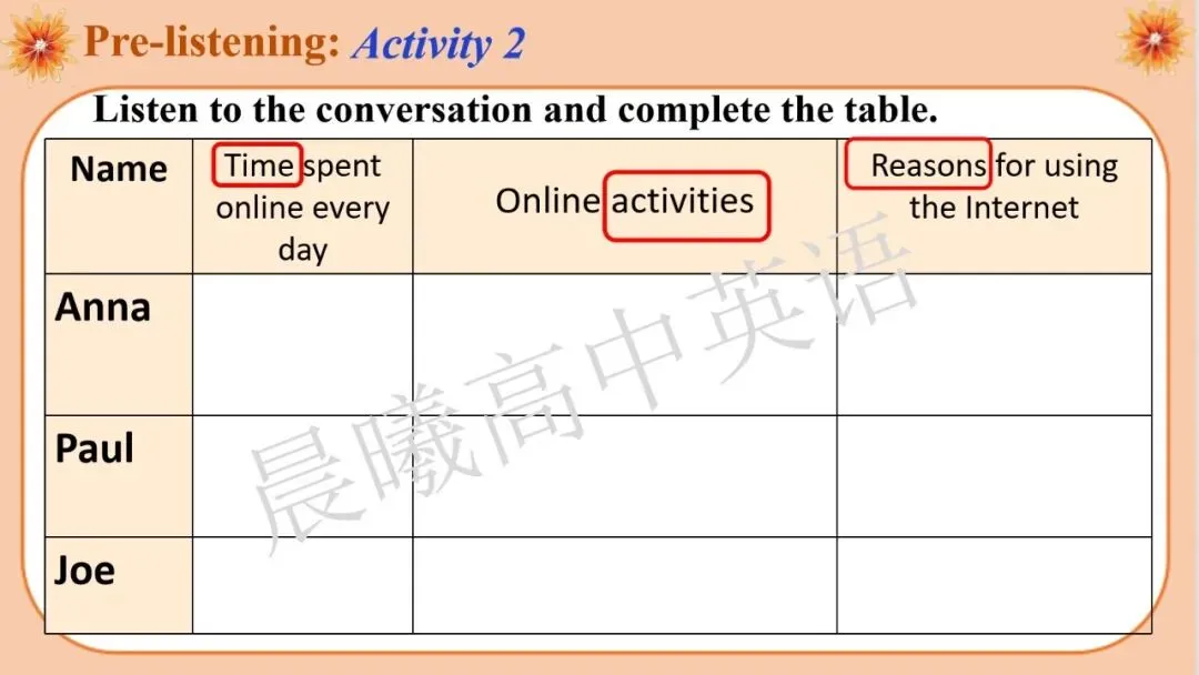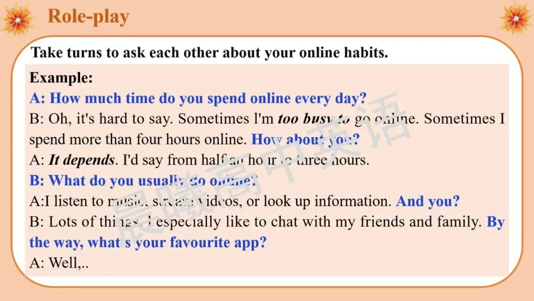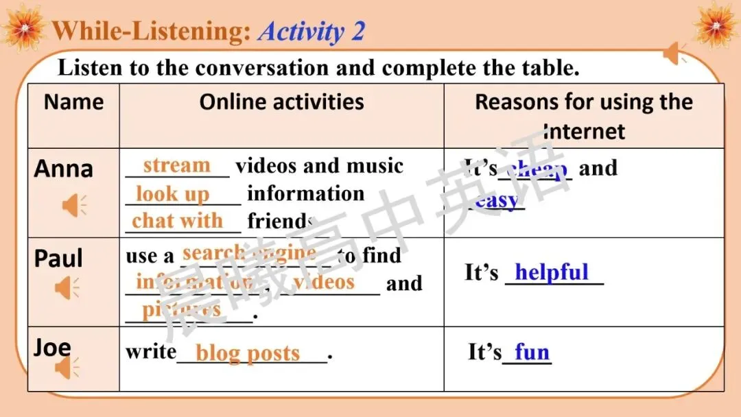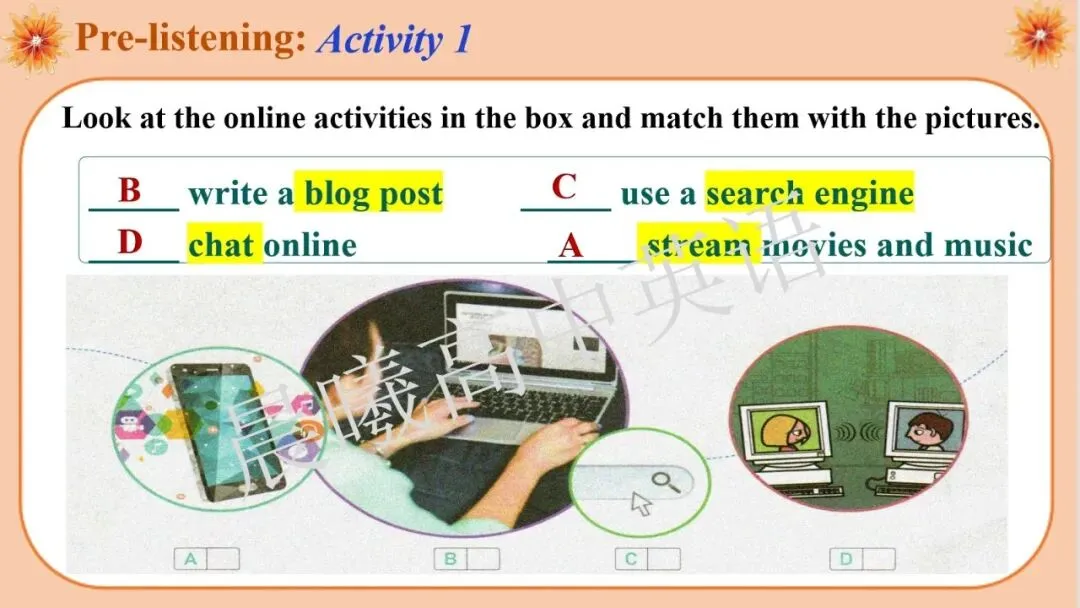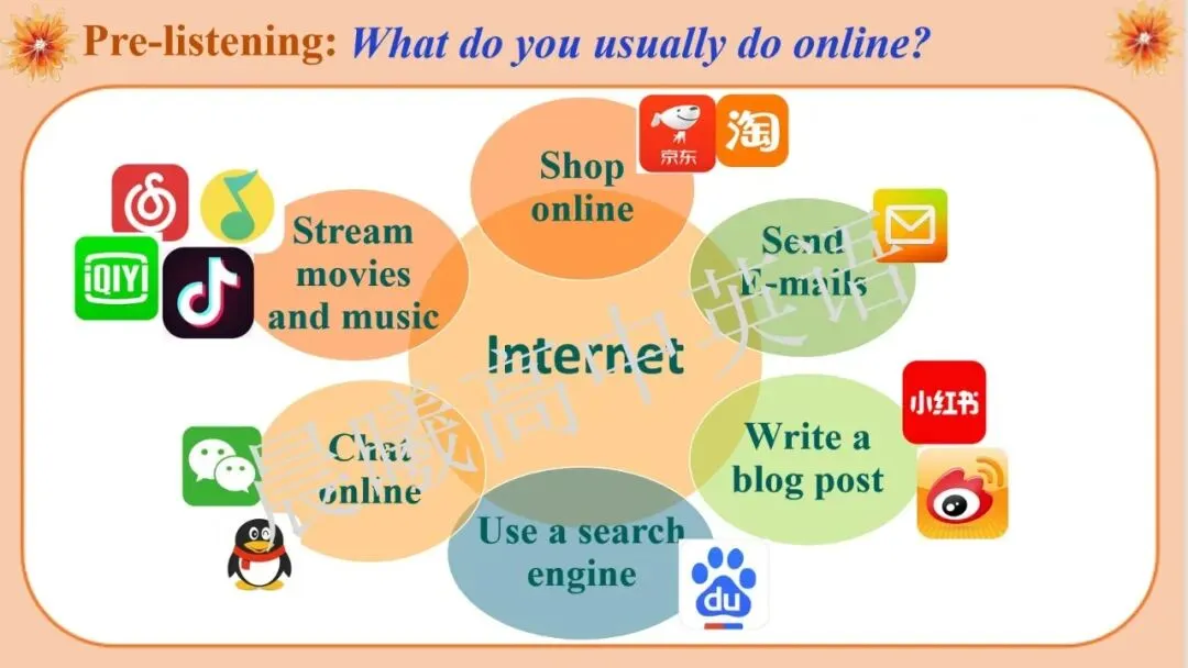 当前位置:首页>课件>【高一课件】必修二 Unit 3 The Internet(listening and speaking and talking)