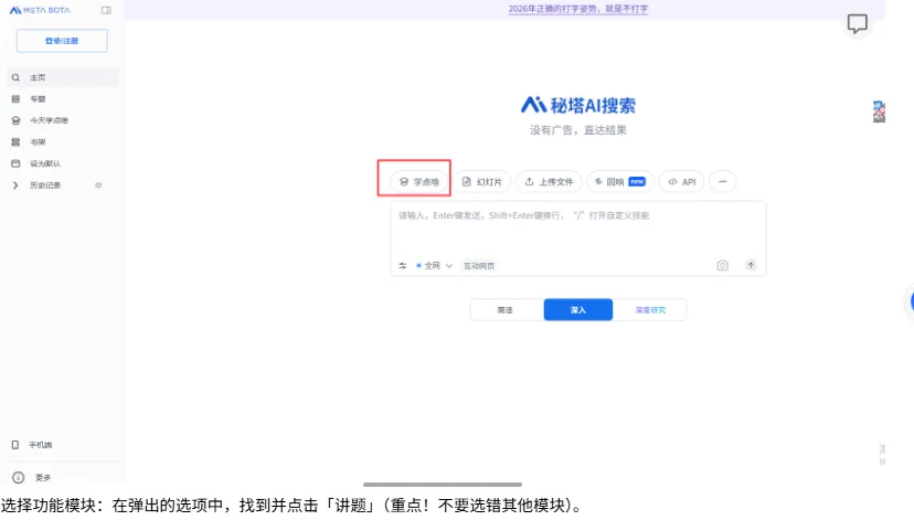 1登录秘塔AI:打开秘塔AI官网或APP,完成简单登录(支持微信、手机号快捷登录)。