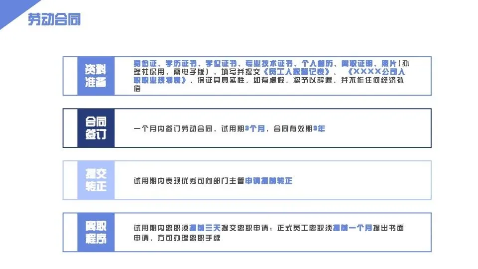 第七条 试用期管理:1. 试用期期限:劳动合同期限3个月以上不满1年的,试用期不超过1个月;劳动合同期限1年以上不满3年的,试用期不超过2个月;3年以上固定期限和无固定期限的劳动合同,试用期不超过6个月;实习生试用期根据实习协议约定执行,最长不超过3个月;2. 试用期考核:试用期届满前3个工作日,用人部门填写《试用期考核表》,结合员工试用期工作表现、专业能力、岗位适配度进行考核,人事行政部汇总考核意见,确定考核结果;3. 考核结果处理:考核合格者,办理转正手续,确定正式薪酬标准;考核不合格者,可延长试用期(延长不超过法定上限)或解除劳动合同,延长试用期需提前告知员工并签订补充协议;4. 试用期要求:试用期员工需严格遵守企业各项制度,积极参与岗位学习与工作,主动向直属领导汇报工作进展,若出现违规违纪、工作失职等情况,人事行政部可直接解除劳动合同。