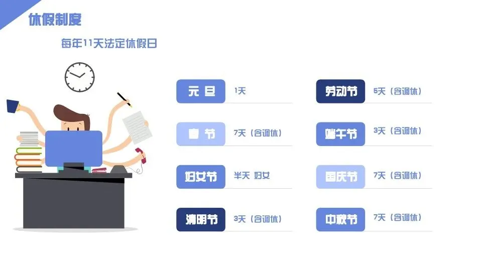 第九条 休假管理:员工休假分为法定节假日、带薪年假、婚假、产假、病假、事假等,休假需严格按流程办理审批手续,严禁无审批休假。