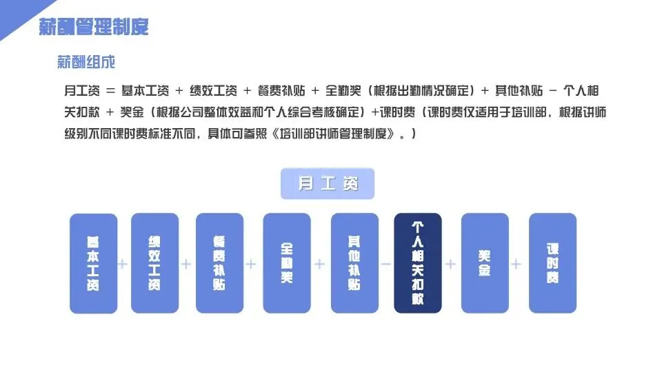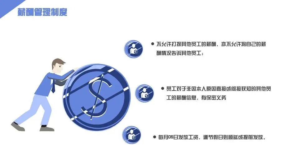 第十条 薪酬管理:1. 薪酬构成:员工薪酬由固定薪酬(基本工资+岗位工资)、浮动薪酬(绩效工资+奖金)、福利补贴(五险一金、交通补贴、餐补、节日福利等)构成,具体薪酬标准根据岗位价值、员工能力、绩效表现及行业水平确定;2. 薪酬发放:每月固定日期(如10日)发放上月薪酬,遇节假日提前发放,薪酬发放采用银行转账方式,人事行政部每月向员工发放薪酬明细,员工对薪酬有异议的,可在3个工作日内反馈至人事行政部,人事行政部核实后及时回复;3. 薪酬调整:企业建立动态薪酬调整机制,每年结合行业薪酬水平、企业经营业绩、员工绩效表现及岗位调整,对员工薪酬进行适度调整,绩效优秀、表现突出的员工优先获得薪酬晋升机会,岗位调整的员工,薪酬按新岗位标准执行;4. 薪酬保密:全体员工需严格遵守薪酬保密规定,不得泄露本人及其他员工薪酬信息,严禁相互打听薪酬,违反薪酬保密规定的,给予通报批评,情节严重的,扣除相应绩效工资。