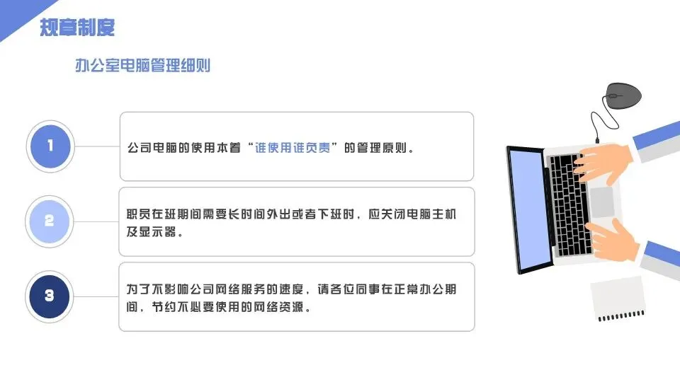 第二十四条 安全管理:1. 办公安全:全体员工需树立安全意识,严格遵守办公安全规定,妥善保管个人办公用品、贵重物品,严禁携带易燃易爆、有毒有害、违禁品进入办公区域;下班时,关闭个人办公电脑、打印机等设备电源,锁好个人办公桌抽屉、文件柜,人事行政部负责检查办公区域门窗、水电、消防设施,确保办公安全;2. 消防安全:办公区域配备消防设施(灭火器、消防栓等),人事行政部定期检查消防设施,确保完好有效,组织员工开展消防安全培训、消防演练,提高员工消防安全意识及应急处置能力;严禁在办公区域违规使用电器、私拉乱接电线,严禁堵塞消防通道、损坏消防设施;3. 信息安全:全体员工需严格遵守企业信息安全规定,妥善保管企业商业秘密、核心技术、员工信息、客户资料等,严禁泄露、传播企业涉密信息;办公电脑设置密码,严禁随意转借他人使用,严禁接入不安全网络,发现信息安全隐患,及时反馈至人事行政部。