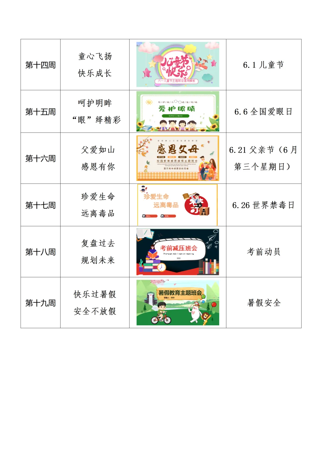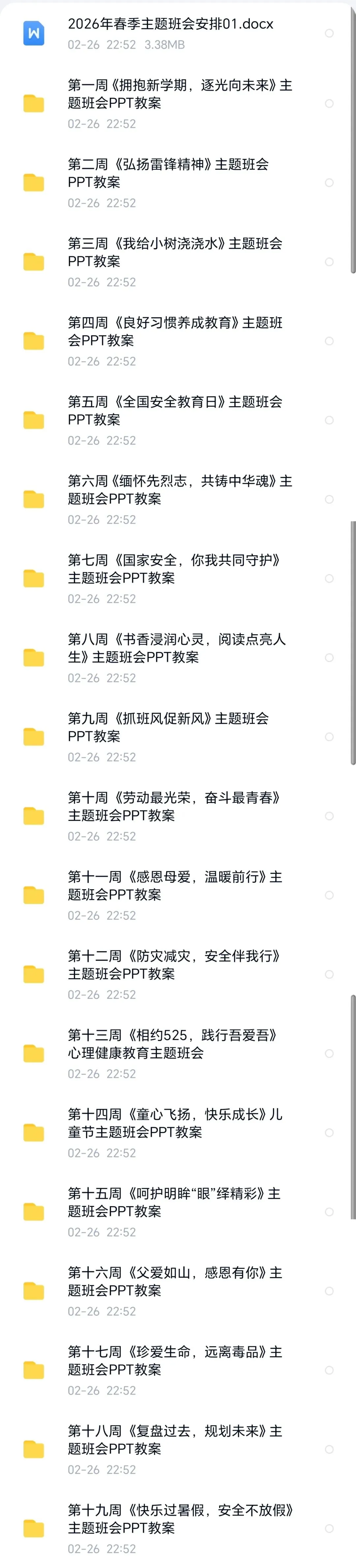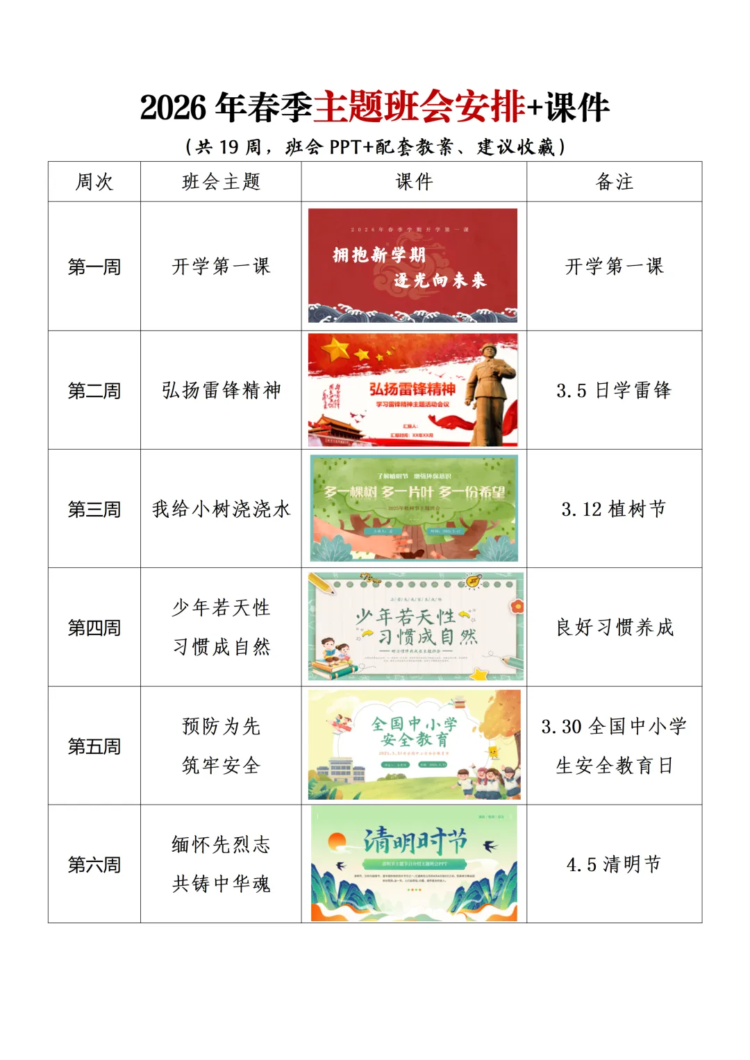 >26春季学期每周主题班会安排(共19周课件PPT+教案)