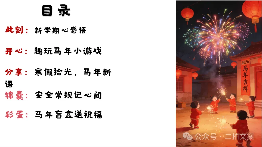 本次班会主题为"新春策马,逐梦新程",分为五个环节: