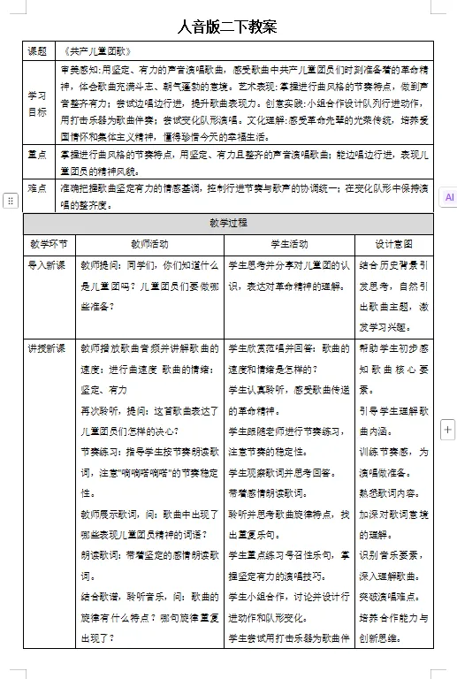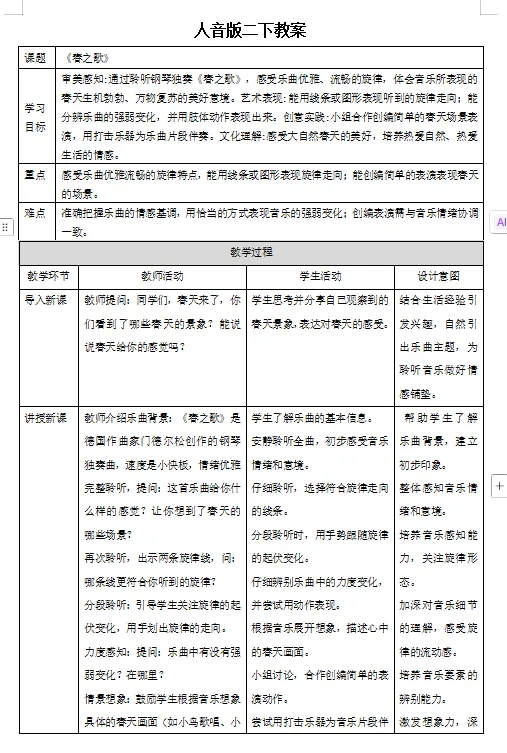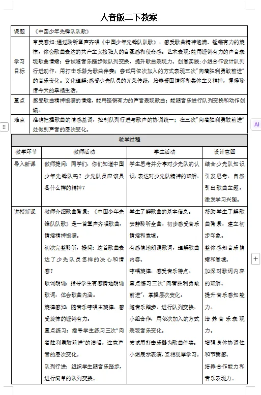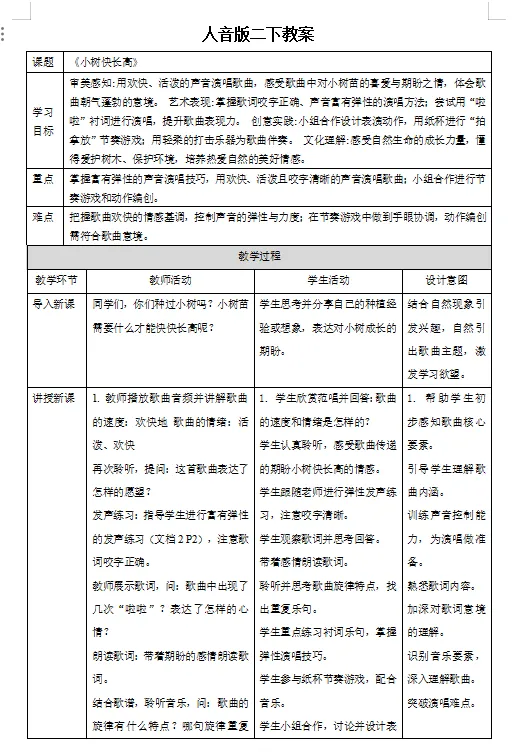 3.学会参与音乐游戏、情境表演和简单乐器合奏,提升肢体协调性、团队合作能力及音乐表现力。