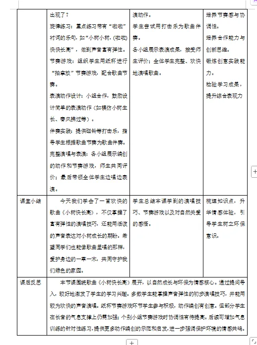 3.积极参与情境表演、音乐游戏和乐器合奏,提升综合音乐表现力与合作能力。