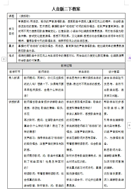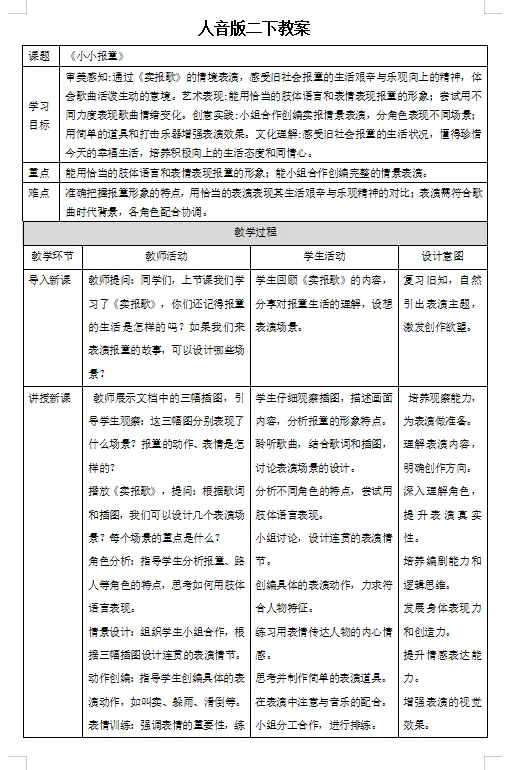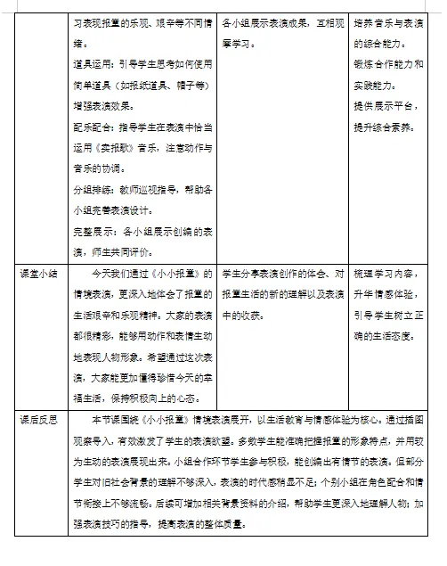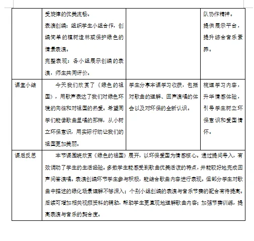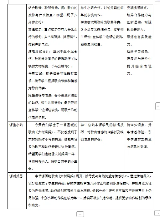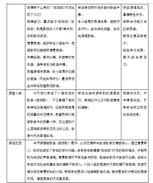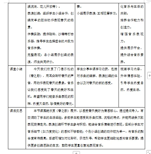2.采用多样化教学方法,通过“唱、听、演、玩、创” 相结合的方式,调动学生积极性。例如,用纸杯游戏巩固节奏,用情境表演深化歌曲理解,用乐器合奏培养合作意识。
