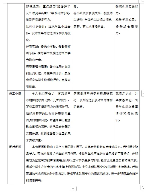第 6 周 | 1. 聆听《酸枣刺》2. 随音乐进行队列变换表演3. 巩固红色歌曲演唱,强化节奏与气势 | 2 | |