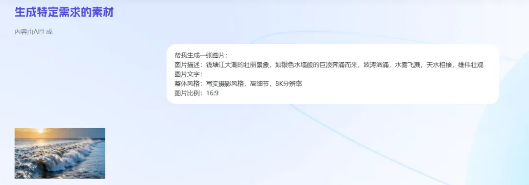 选择需要生成的素材类型,输入指令描述,或者让AI直接生成描述文案。10秒生成高清图片或短视频,直接用于课件、板书或课堂导入,知识点瞬间生动直观!