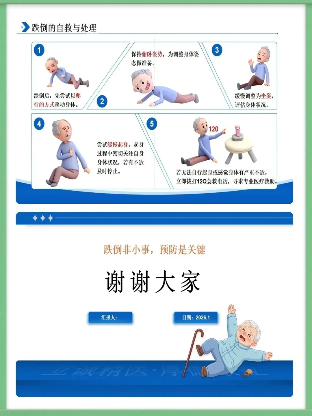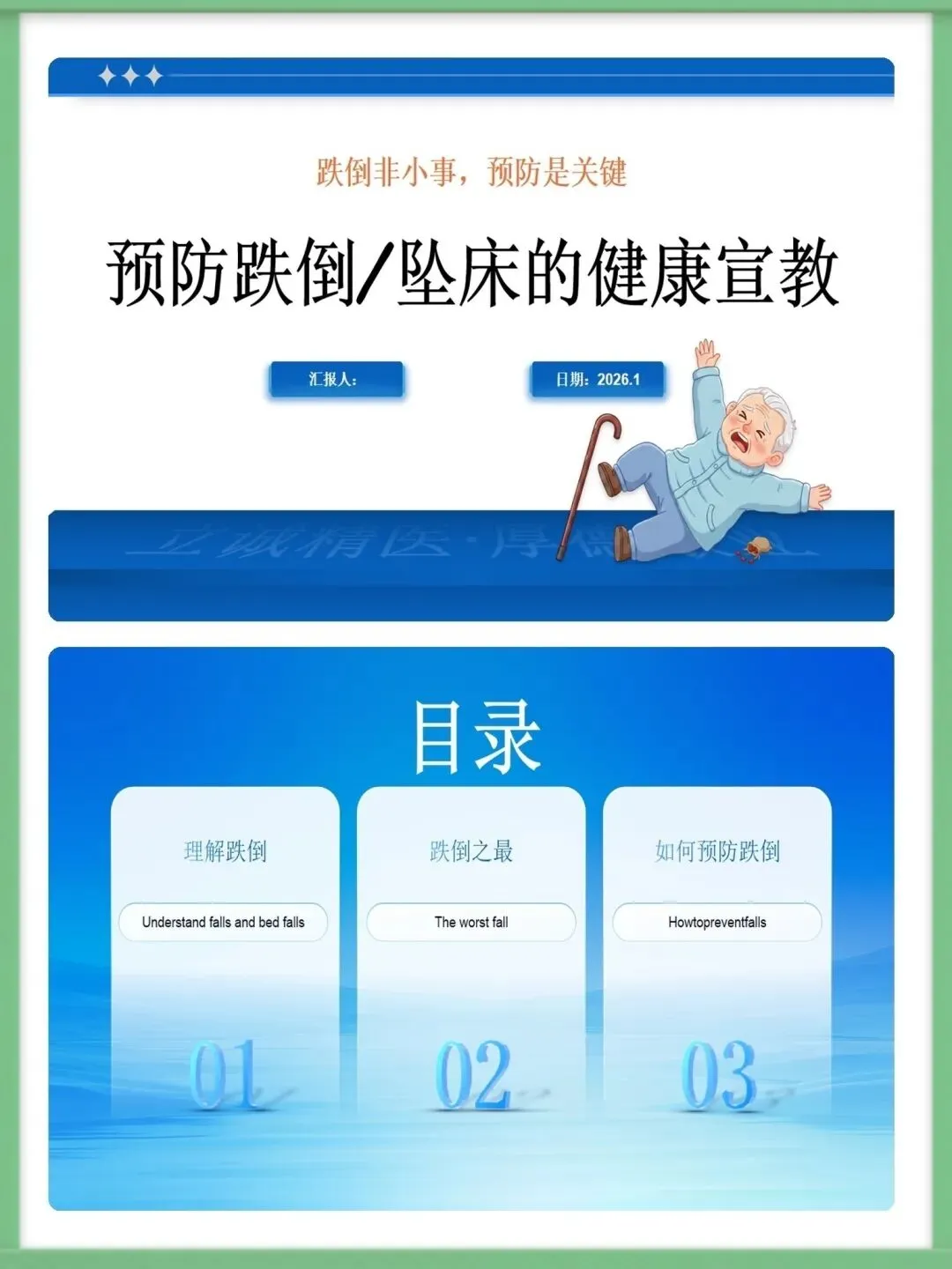 🌲名称:预防跌倒、坠床的健康宣教ppt模板课件模板