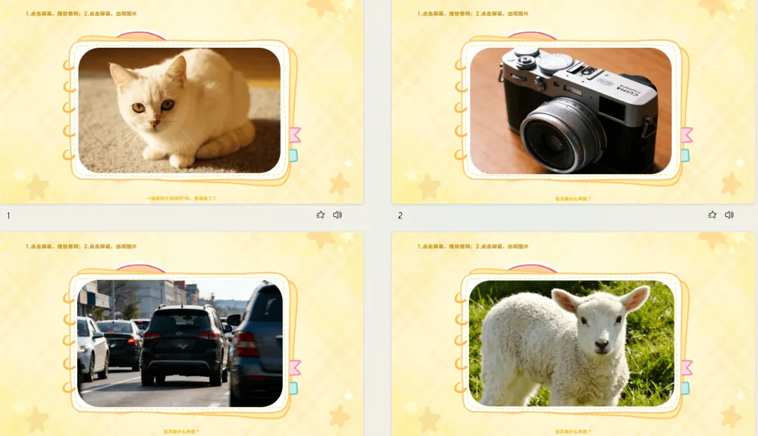 ——小朋友们,一起来玩个游戏吧!听,是谁来了?这又是什么声音?
