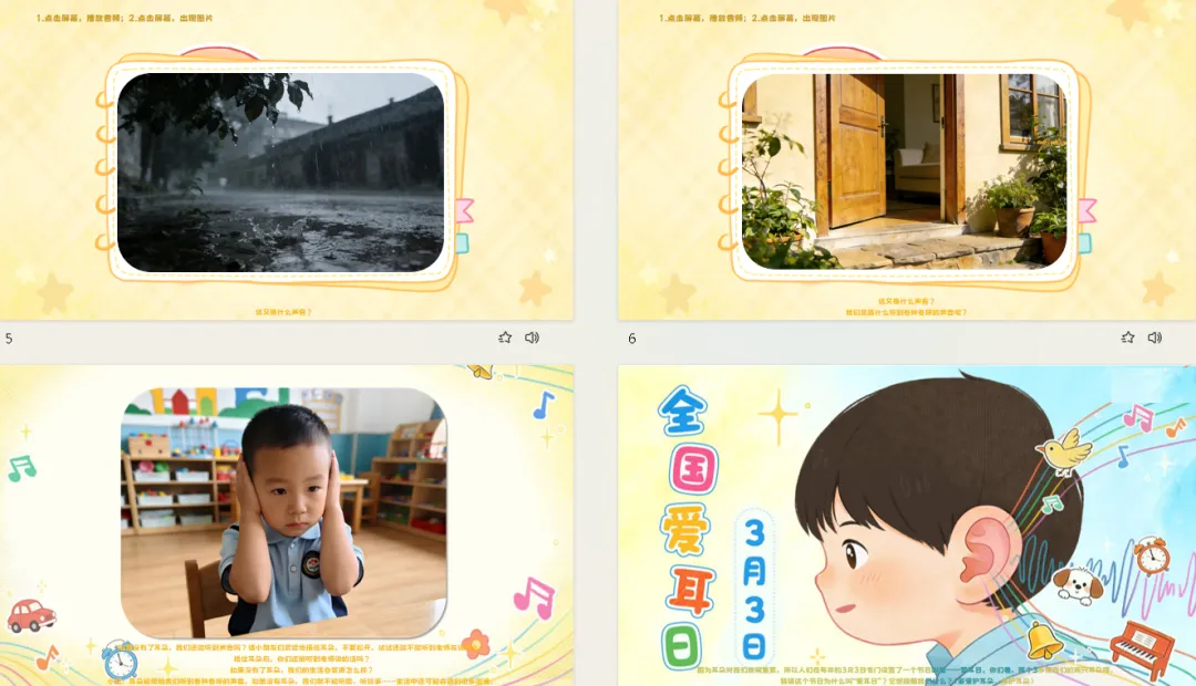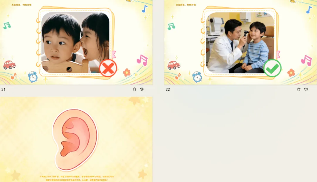 小结:每年的3月3日是“爱耳日”,它在提醒我们要爱护耳朵、保护耳朵。