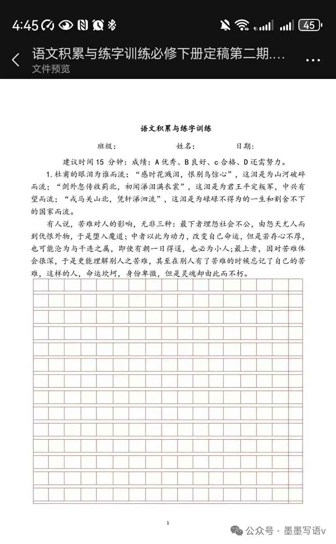 必修下册教材素材练字格子两期一共80页,效果真的好呀!