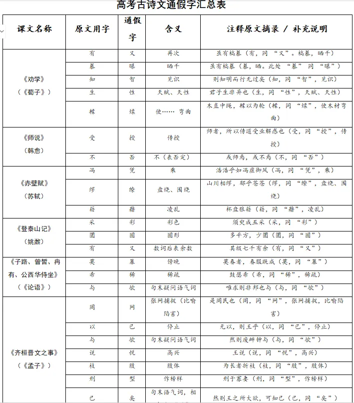 通假字是高中语文常考的知识点,尤其当下趋势更加注重教考衔接。基于此,鸡腿老师精心整理了高中课本中古诗文所有的通假字情况,做成PPT课件与word文档。