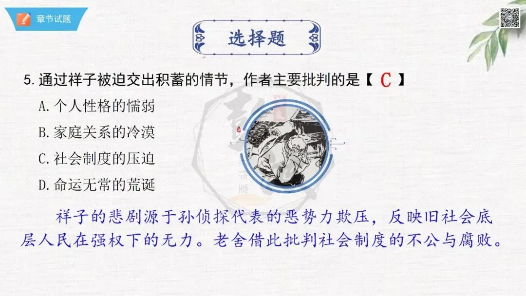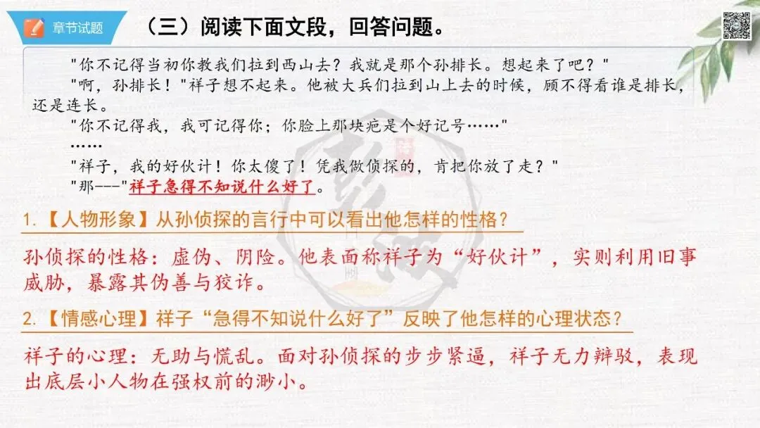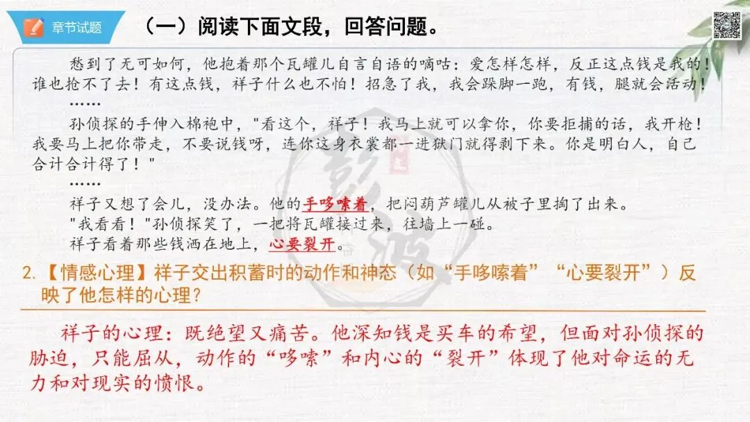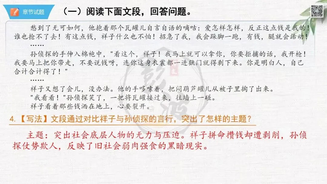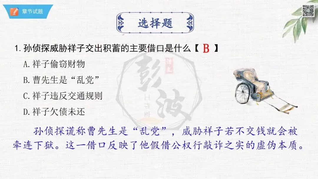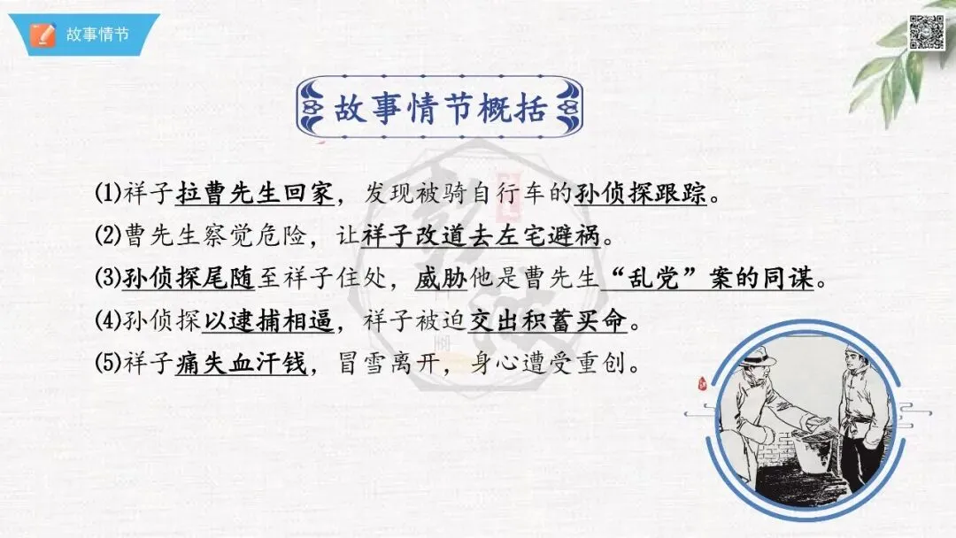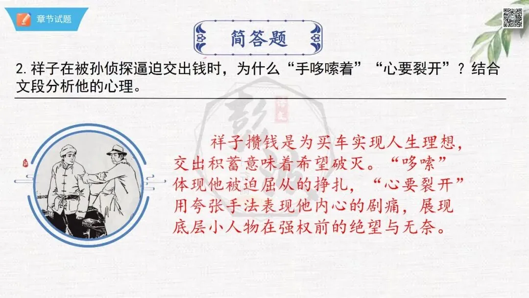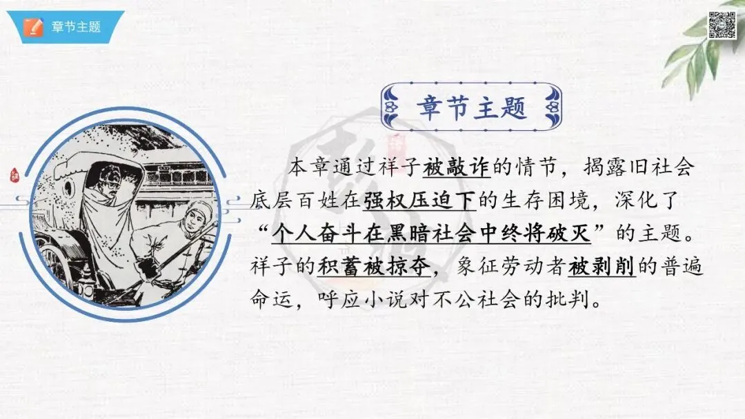 ◆02《骆驼祥子》章节课件24章-情节梳理+人物形象+语句赏析+章节试题(PPT)(65元)