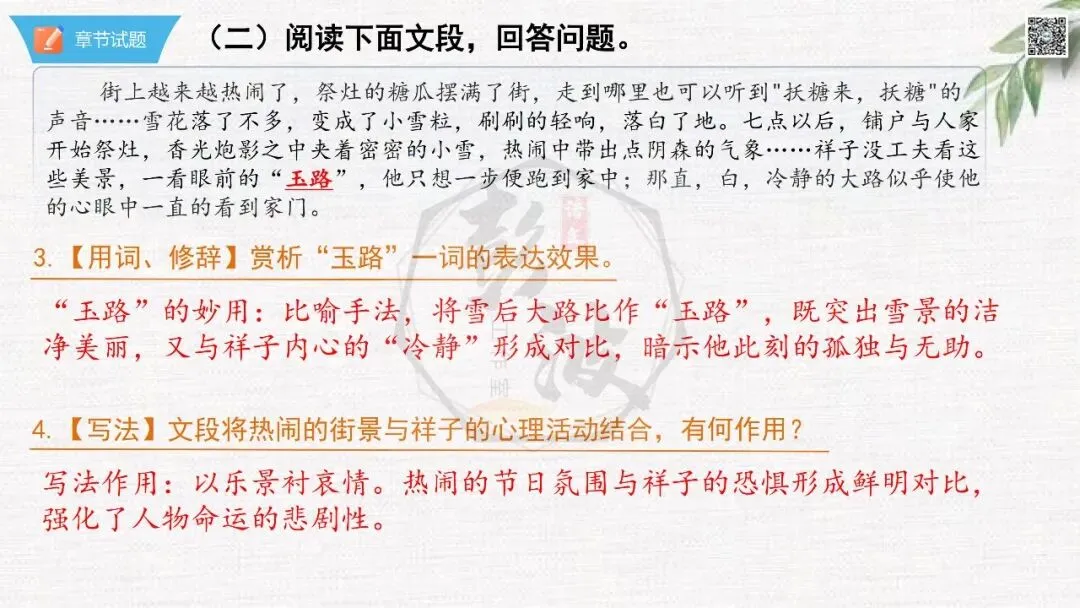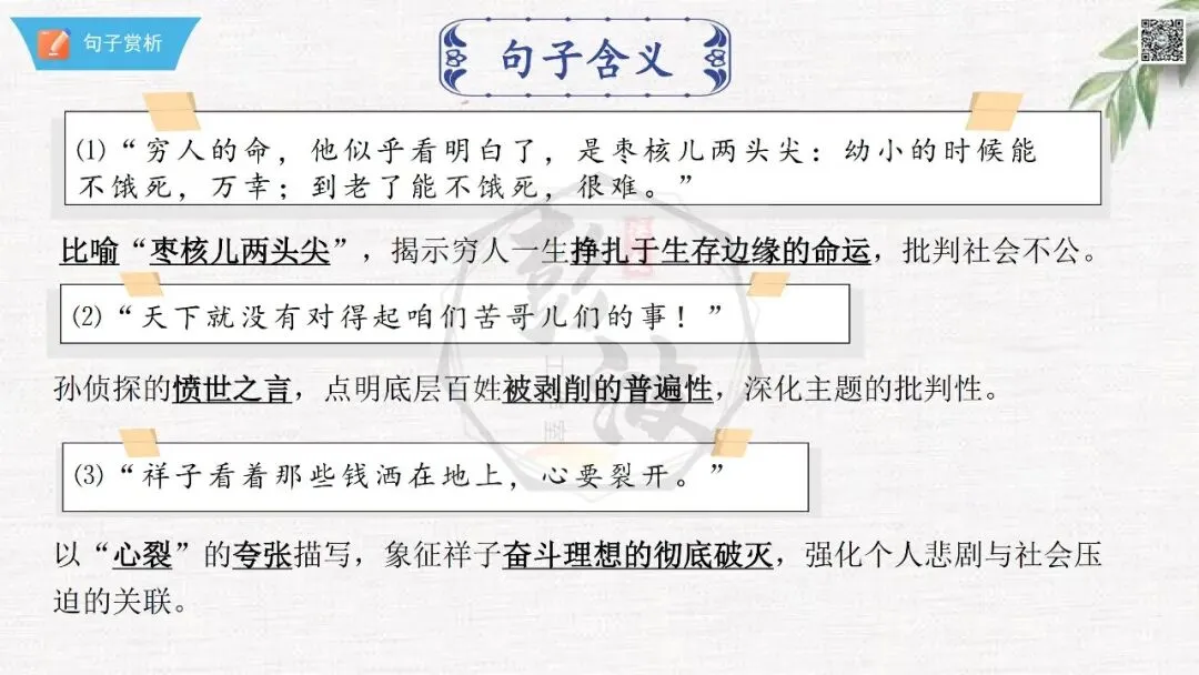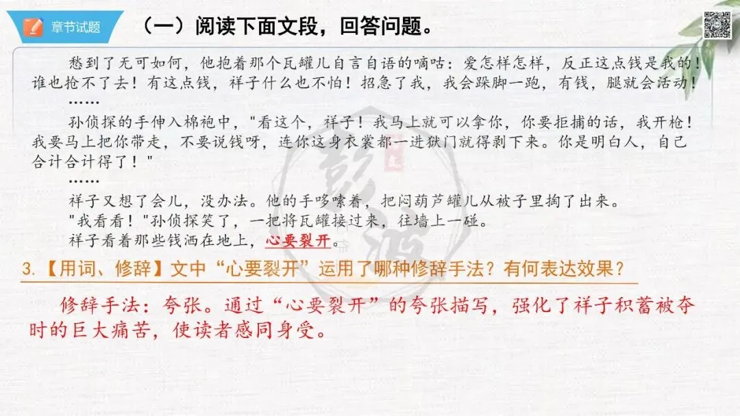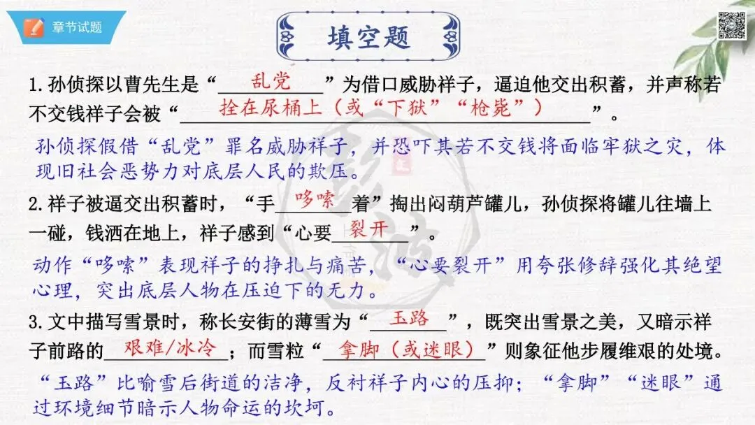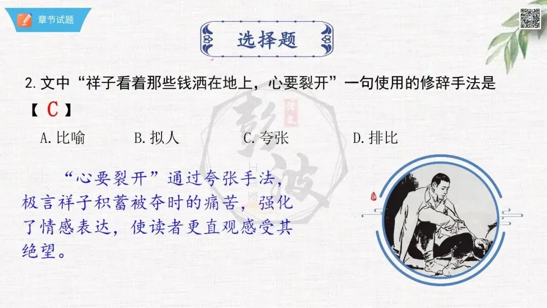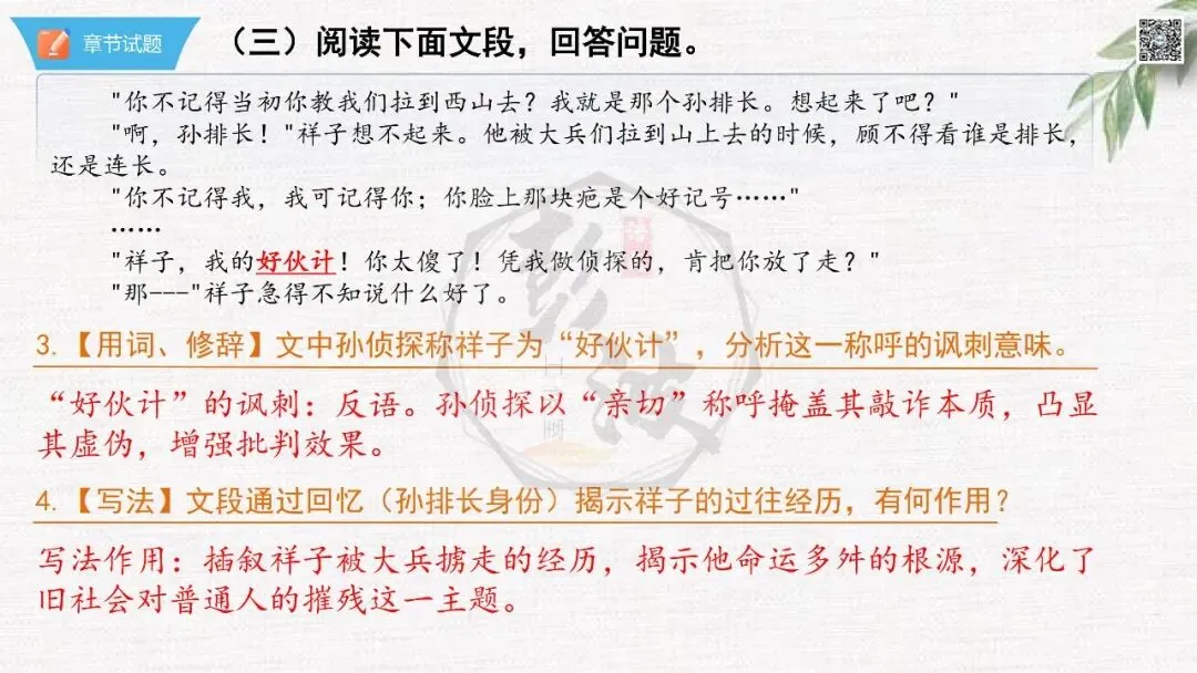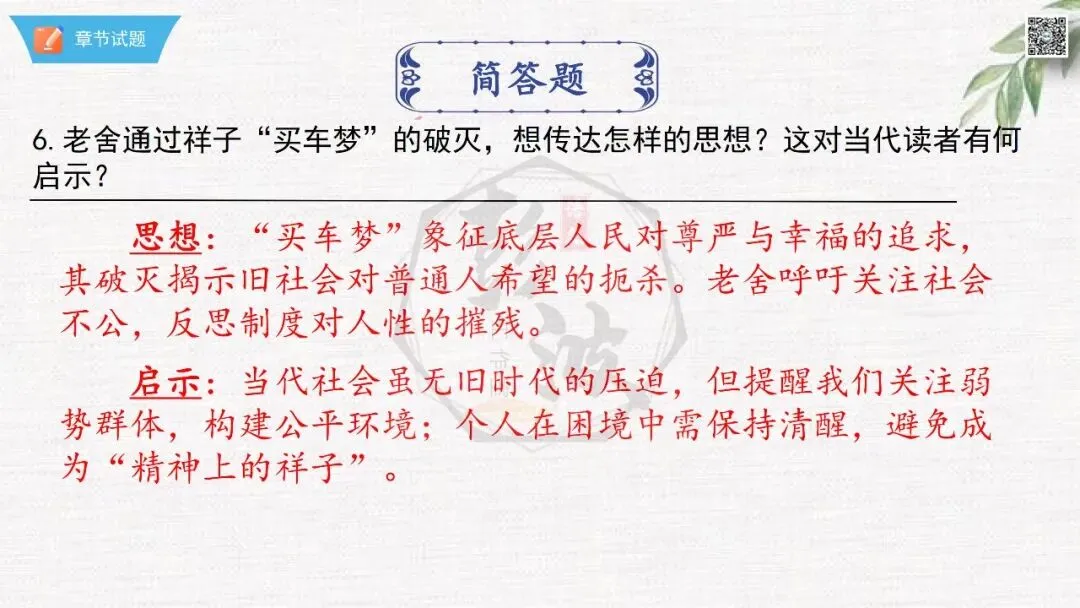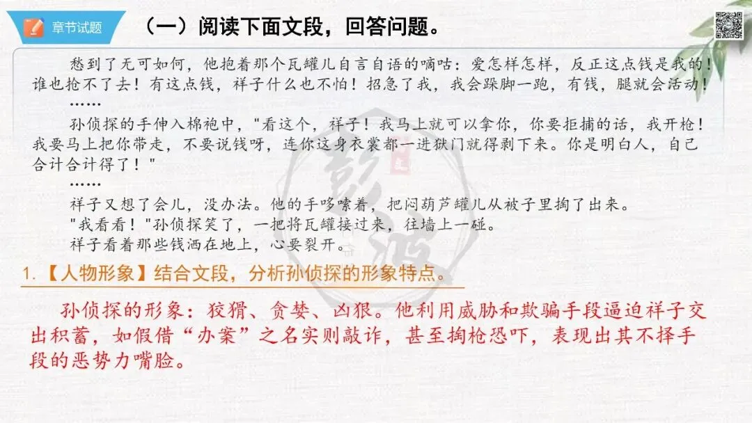 ◆02《骆驼祥子》章节课件24章-情节梳理+人物形象+语句赏析+章节试题(PPT)(65元)