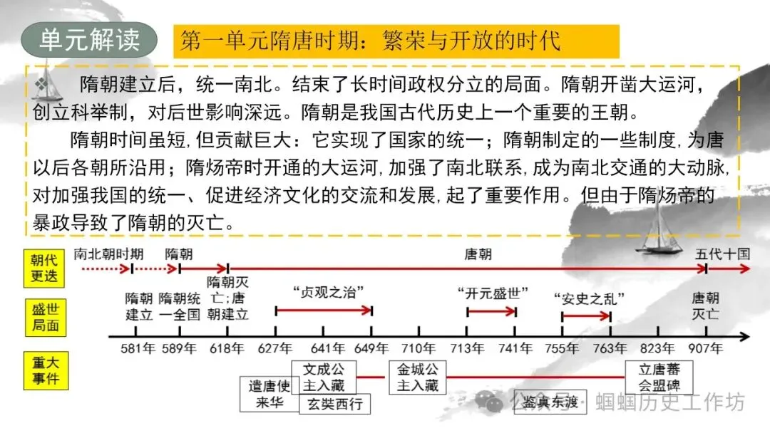①知道隋朝建立、统一及经济发展的基本史实,分析隋朝速亡的原因。(时空观念、历史解释)