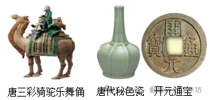 【详解】据所学可知,唐三彩骑驼乐舞俑、唐代秘色瓷反映了唐朝陶瓷业发达,开元通宝反映了唐朝冶铸业兴盛,故图片文物共同反映了唐代手工业发展水平,C项正确;图片文物反映的是经济,与政治、文化无关,排除AD项;唐代秘色瓷、开元通宝与民族交融无关,排除B项。故选C项。