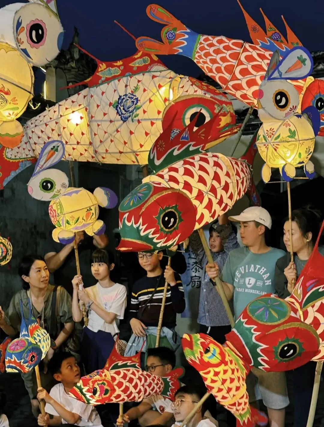 2. 色彩特点:传统鱼灯多用红、黄、金、蓝等鲜艳颜色,喜庆又醒目。