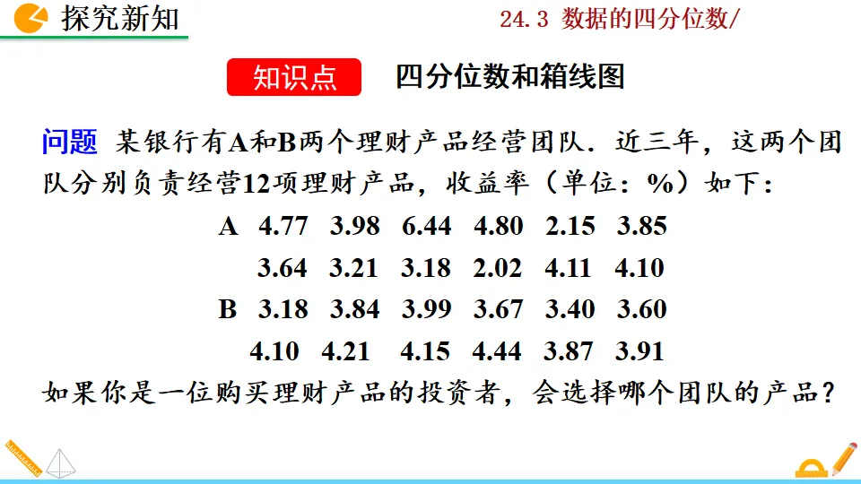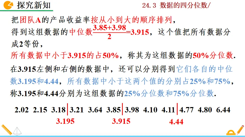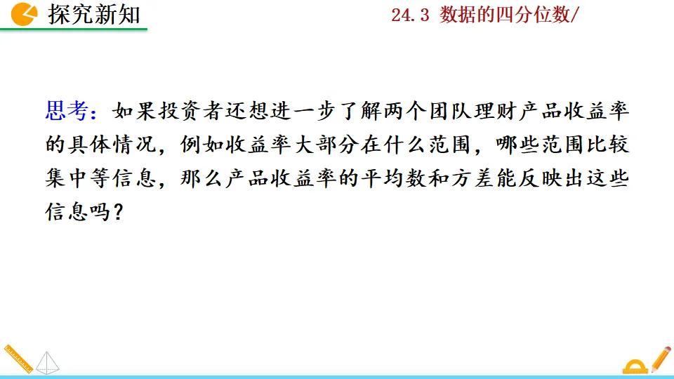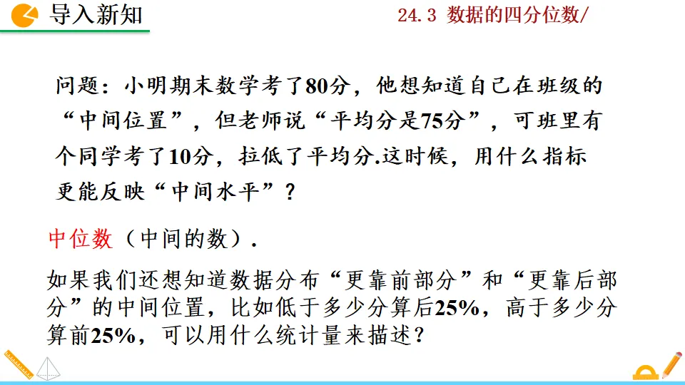 当前位置:首页>课件>数据的四分位数PPT教学课件人教版数学八年级下册