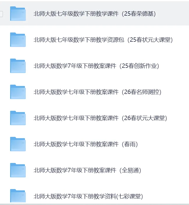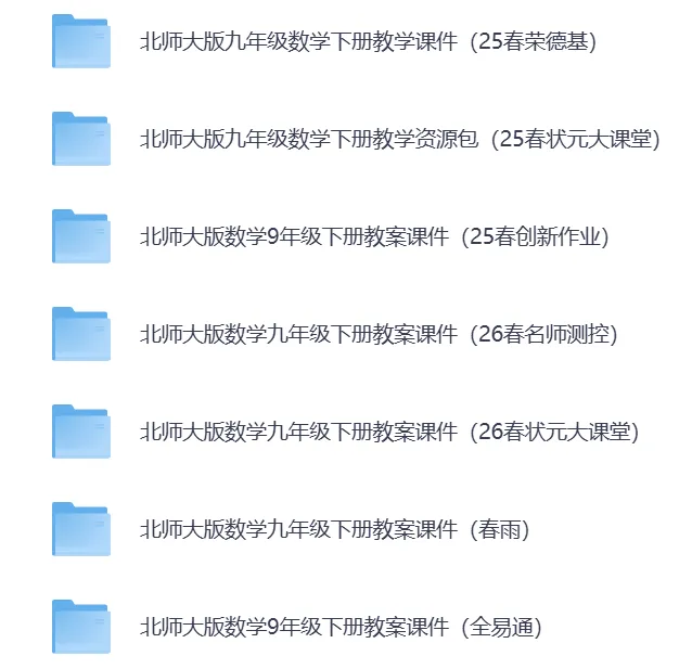 2026春最新北师大版数学7-9年级下册教案课件教学资源包(持续更新)·可免费下载。覆盖初一至初三全年级下册。七八九年级下册内含优质教案、精美 PPT、同步练习等全套教学资料,紧扣教材、实用省心。老师备课、家长辅导都能用,轻松搞定新学期教学与预习!助力老师高效备课、轻松教学,提升课堂质量与教学效率北师大版数学七年级下册教案课件(26春名师测控)教学资源包