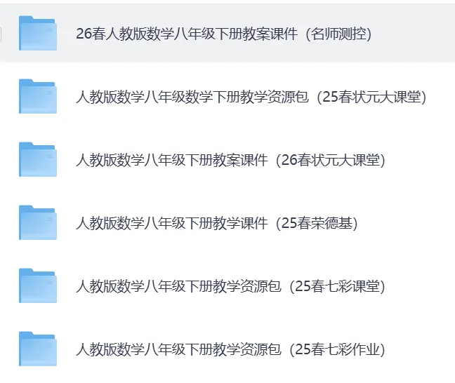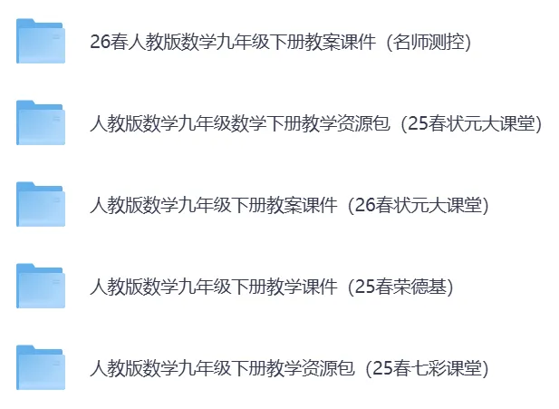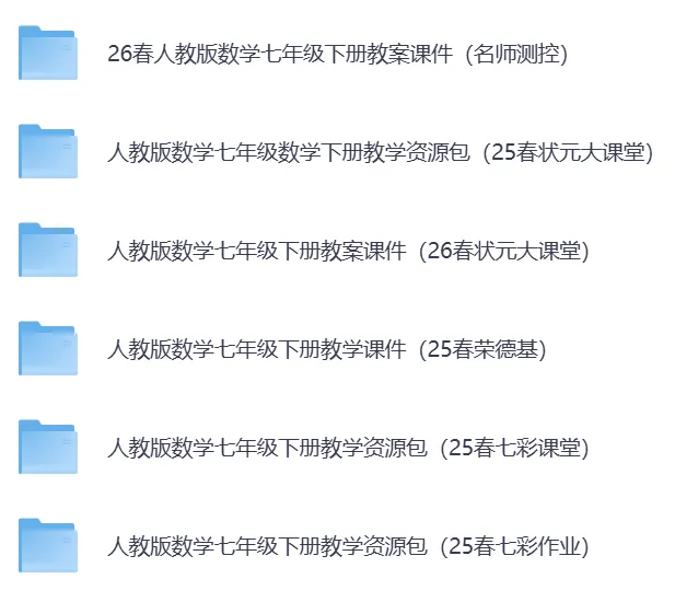 2026春最新人教版数学7-9年级下册教案课件教学资源包(持续更新)·可免费下载。覆盖初一至初三全年级下册。七八九年级下册内含优质教案、精美 PPT、同步练习等全套教学资料,紧扣教材、实用省心。老师备课、家长辅导都能用,轻松搞定新学期教学与预习!助力老师高效备课、轻松教学,提升课堂质量与教学效率26春人教版数学七年级下册教案课件(名师测控)教学资源包