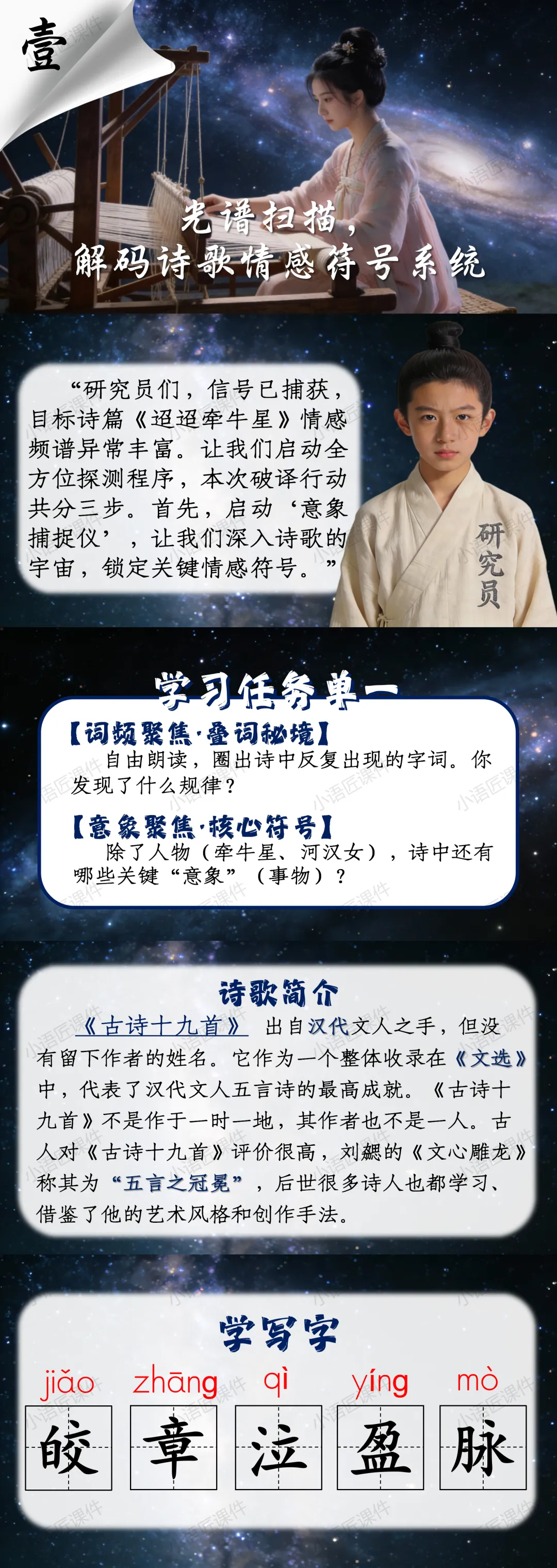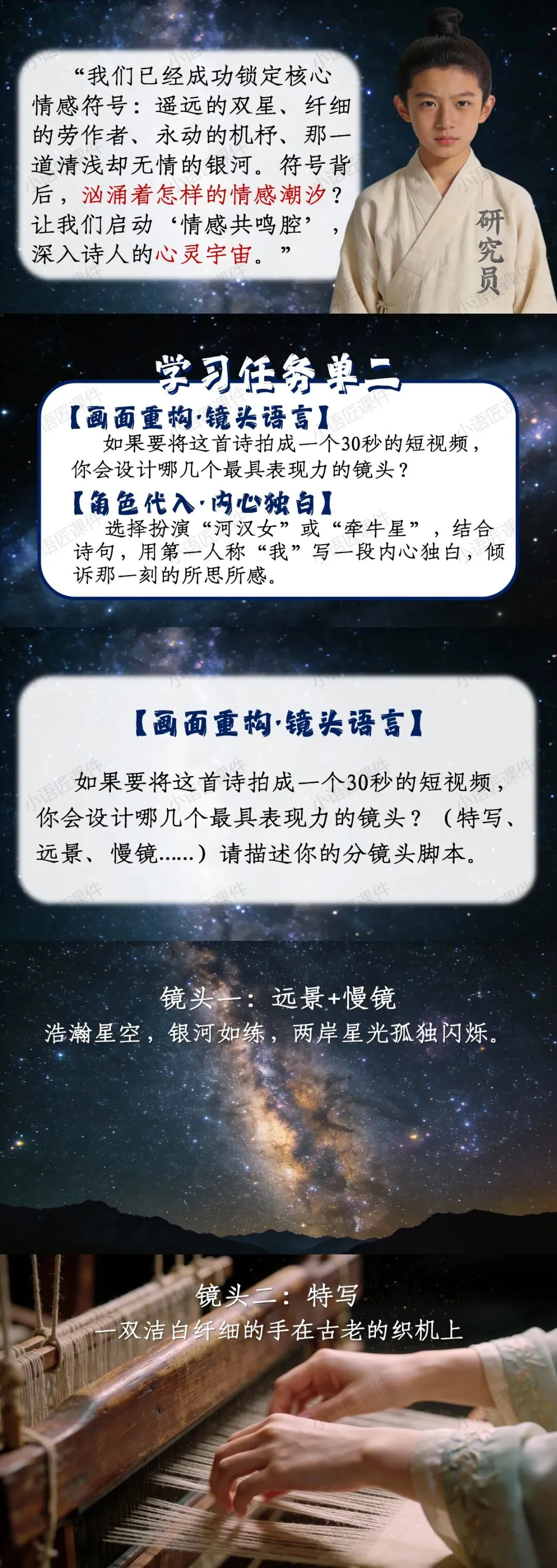 以上便是部编人教版六年级下册《迢迢牵牛星》的独家课件的全部内容。