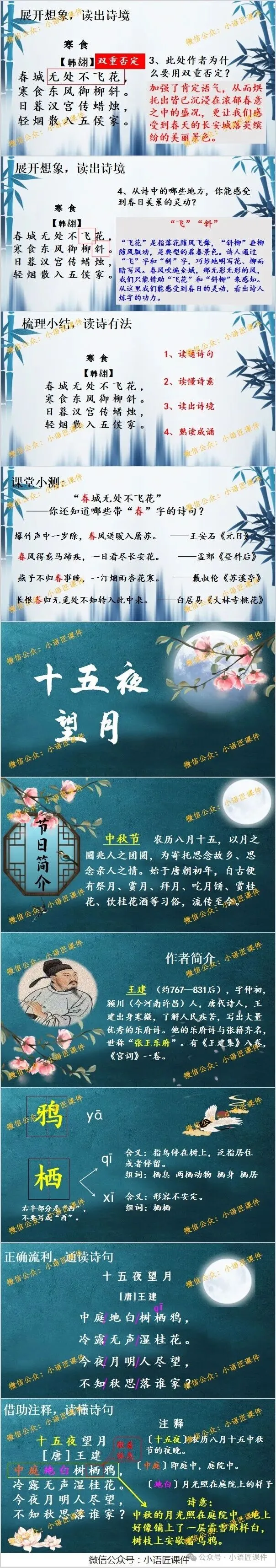以上便部编六年级下册《古诗三首》《寒食》《十五夜望月》《迢迢牵牛星》的独家课件的全部内容。