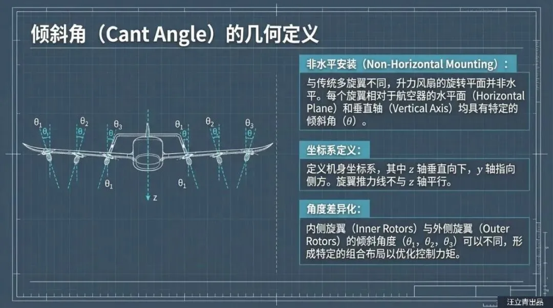 更有意思的是,这些倾斜角度并不是工程师拍脑袋决定的,而是通过一套复杂的算法“算”出来的。专利中提到,设计团队会根据力矩平衡、故障冗余甚至是风阻最小化等条件,对每一个螺旋桨的安装角度进行优化。比如前排的螺旋桨可能向前倾,后排的向后倾,这样不仅能防止碎片伤人,还能在不同的飞行阶段提供最佳的气动效率。Wisk Aero的这项专利再次证明,未来的空中出行不仅仅是把电机装上飞机那么简单,每一个看似不起眼的细节——哪怕是一个倾斜的角度,都关乎着未来我们头顶那片天空的安全与效率。