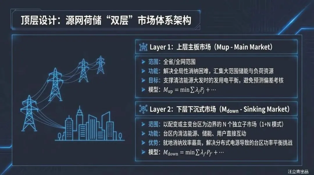 为了彻底治好新能源这个“多动症”,江苏电力交易中心直接在顶层设计上下了一剂猛药——首创基于互联网大范围特性的“源网荷储双层市场体系”。这就好比给电力交易搞了个“淘宝大盘+同城交易圈”的混合模式。它不仅保留了统管全局、用于大范围空间维度互动的大电网“主板市场”,更犀利的是在配网局域层面按台区划分出了无数个相对独立的“下沉式子市场”。在局部的下沉市场里,谁家光伏发多了,或者谁家风电波动大了,由于供需双方熟知彼此的生产习惯,周边的储能电站和用电大户立刻就能通过改变发用电行为将这些电“吃掉”或“补上”。这种让发电端(源)、电网(网)、用电端(荷)和超级大电池(储)强行“组CP”的玩法,不仅让清洁能源实现了最高效的就地消纳,还巧妙避开了长距离调峰带来的系统压力。