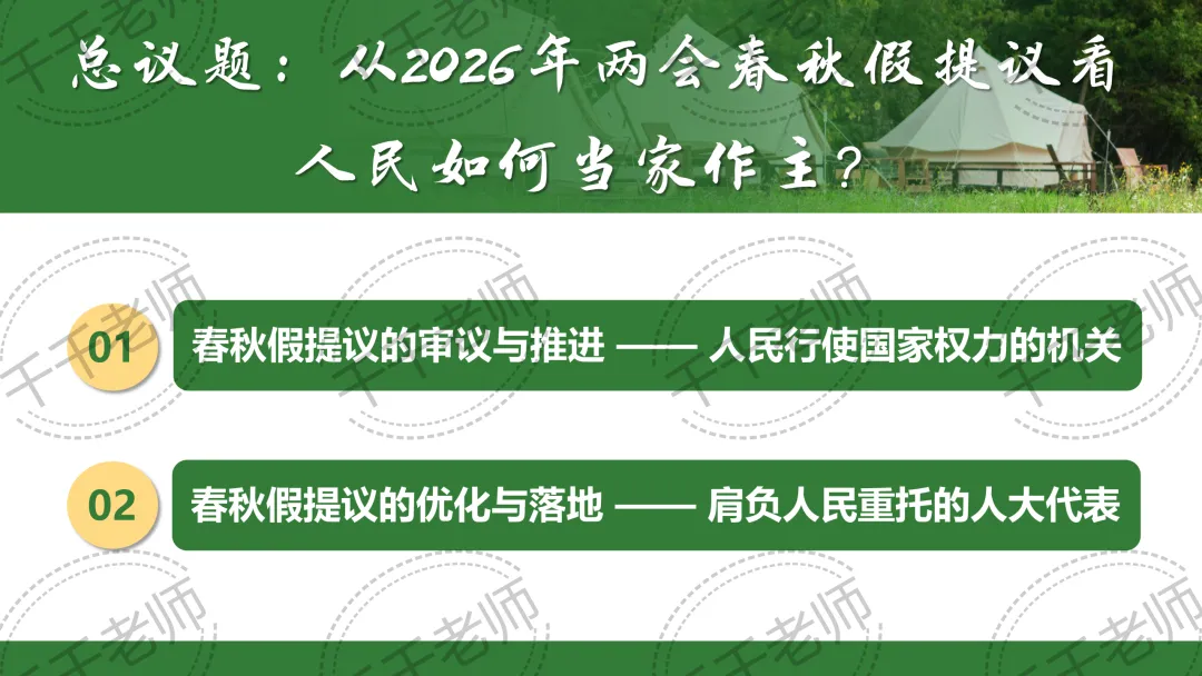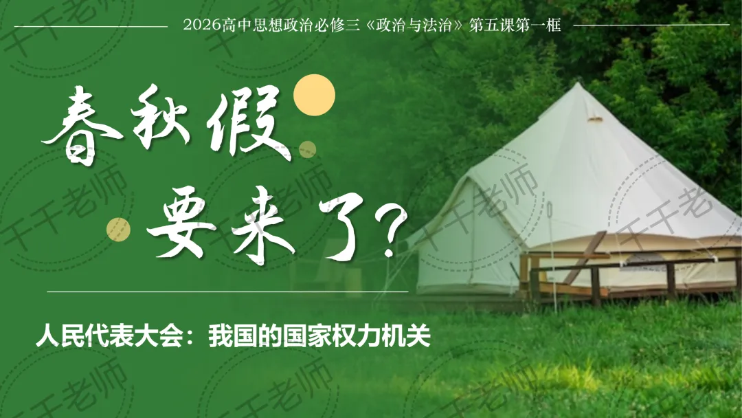 >公开课赛课课件|2026高中政治必修三5.1人民代表大会:我国的国家权力机关PPT+逐字稿(中小学生春秋假要来了?!2026年两会最新素材)