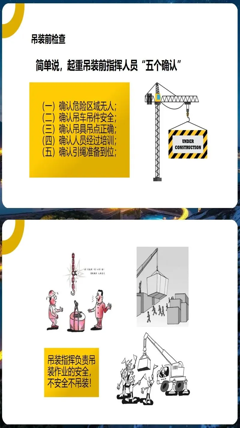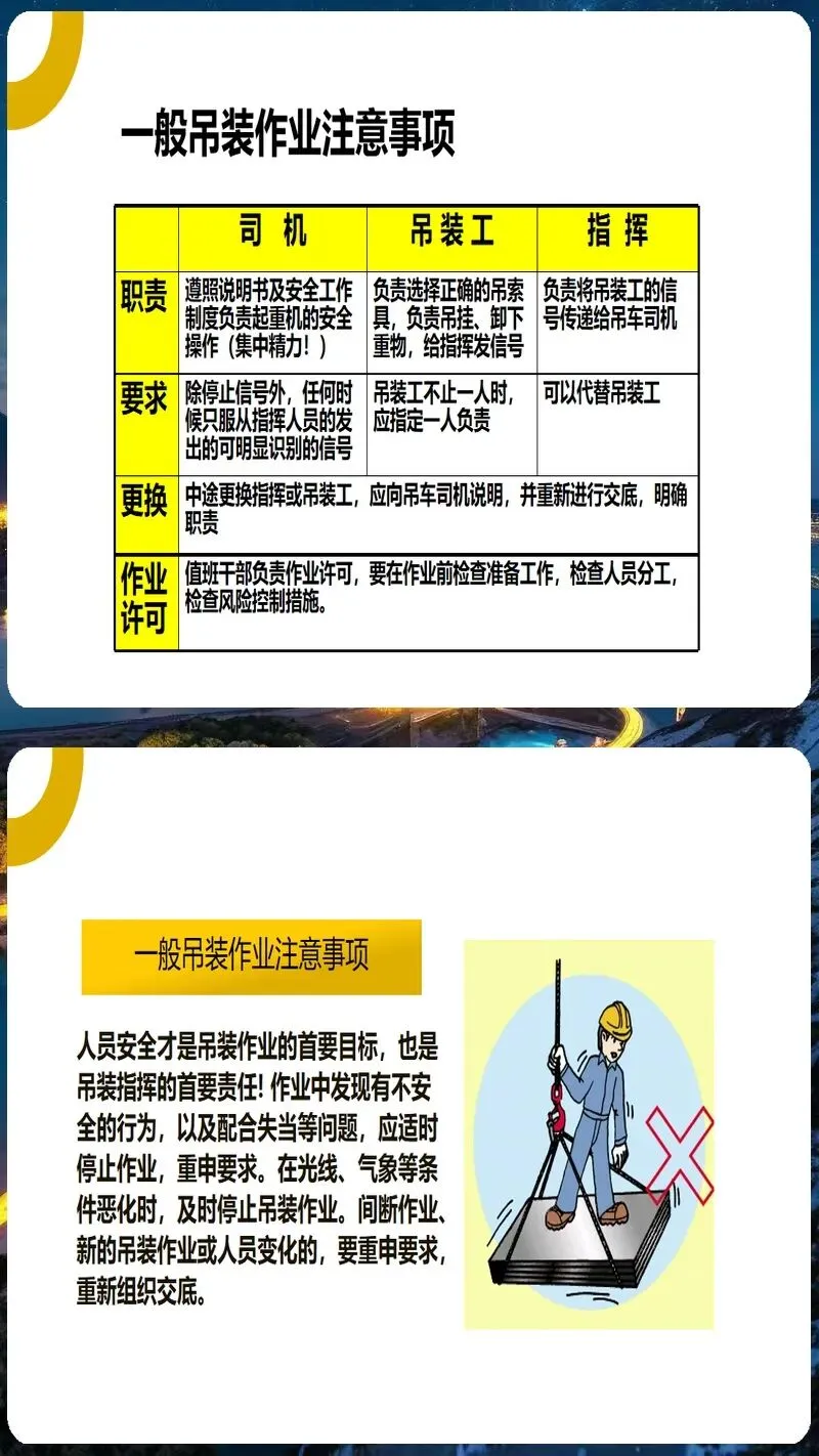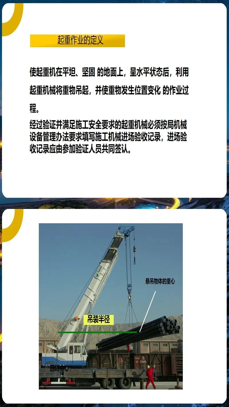起重吊装作业培训课件内容丰富、形式多样。它涵盖了起重吊装作业的各个方面,包括起重吊装作业的安全管理制度、起重吊装作业的安全操作规程、起重吊装作业的安全防护措施、起重吊装作业的应急处置方法等。