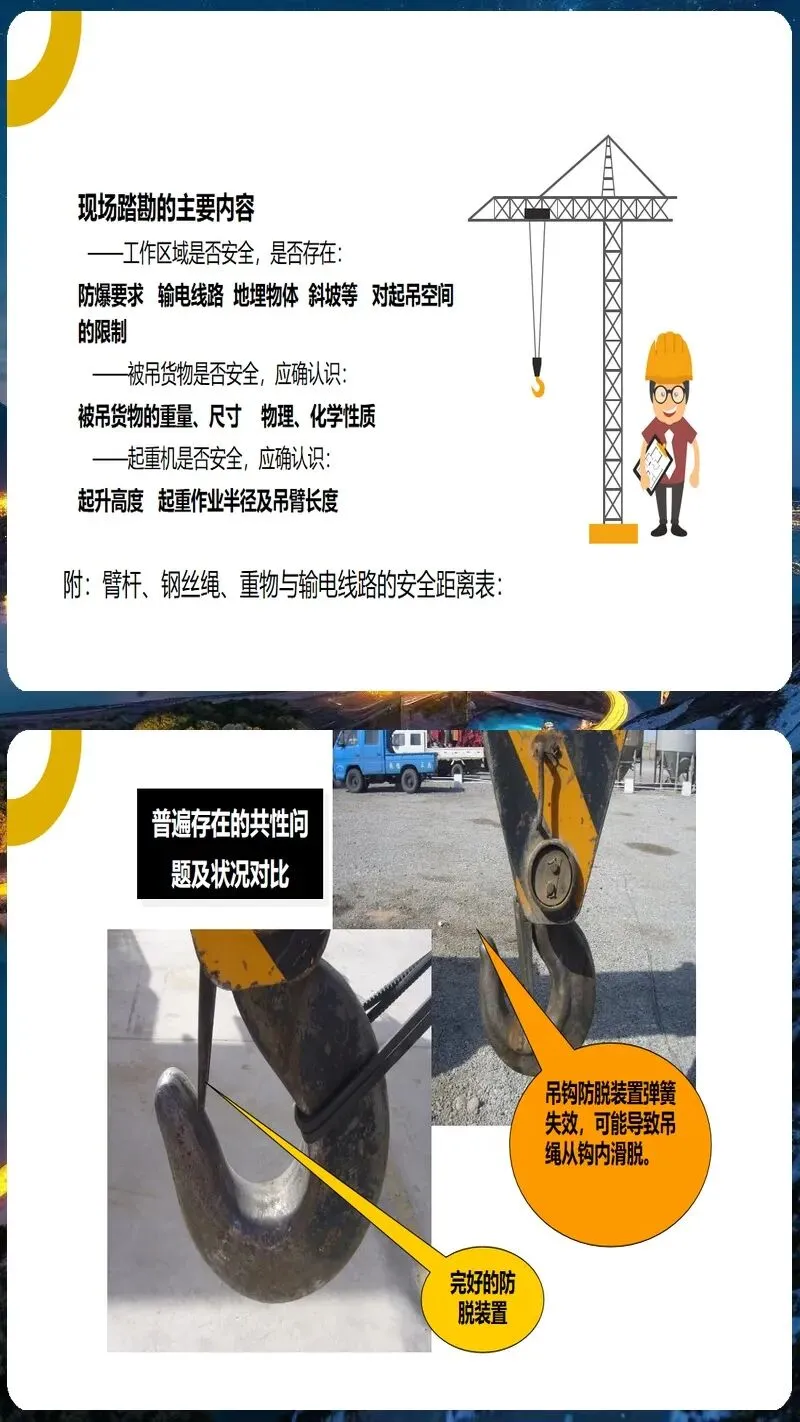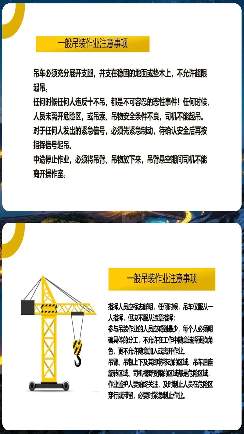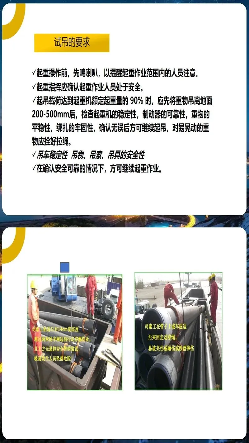 起重吊装作业培训课件内容丰富、形式多样。它涵盖了起重吊装作业的各个方面,包括起重吊装作业的安全管理制度、起重吊装作业的安全操作规程、起重吊装作业的安全防护措施、起重吊装作业的应急处置方法等。