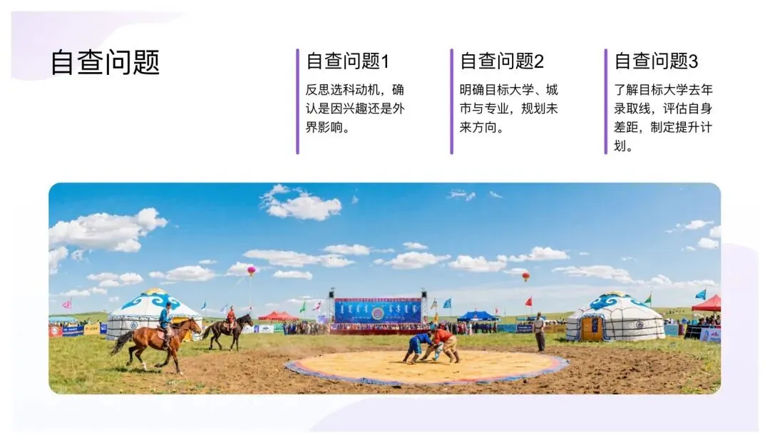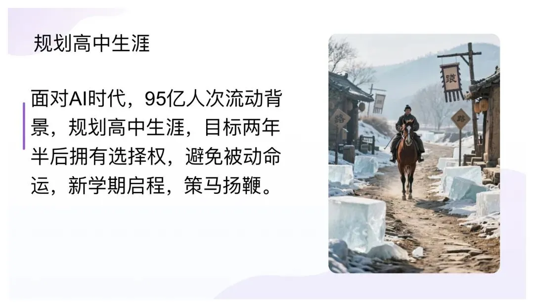 今天这篇班会设计,融入了马年的文化意象,结合了最新的大学排名数据,更贯穿了生涯规划的理念。希望能为正在备课的同仁提供参考,更希望每一个高一学子都能在这个马年,以梦为马,不负韶华。