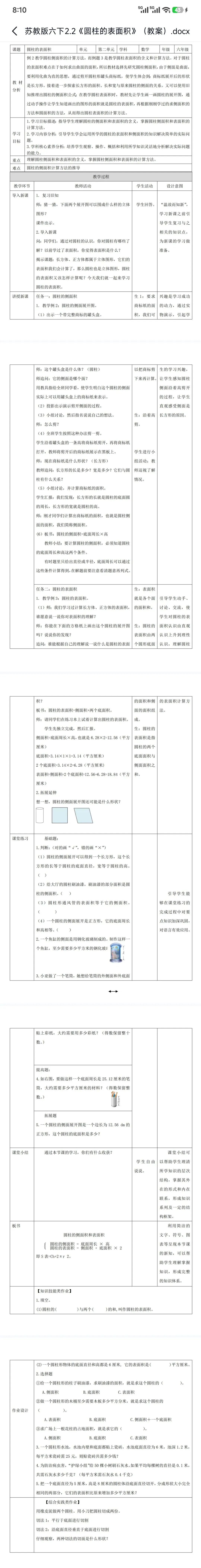 苏教版小学数学六下《圆柱的表面积》新课标课件+核心素养教案+大单元整体教学设计
