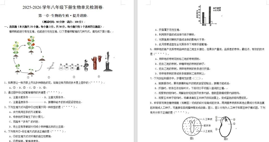 2026春人教版生物八年级下册电子课本+课件PPT+教学设计+导学案+单元测试(基础版+提升版)+知识清单+知识点汇总,所有资料都是对应最新版,保存后会同步更新!!