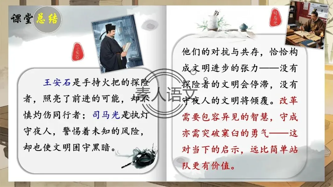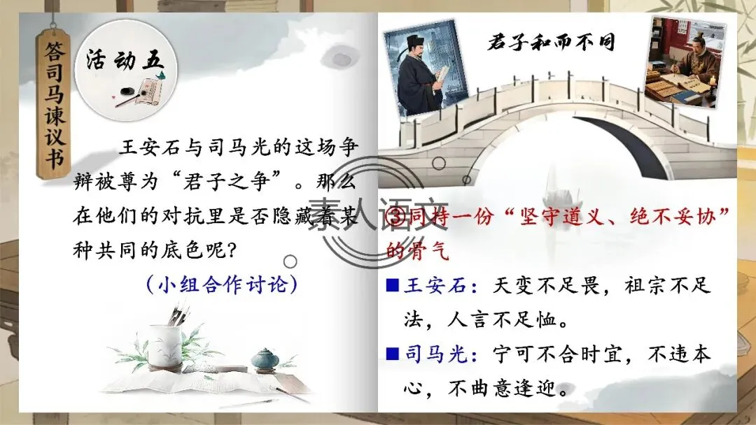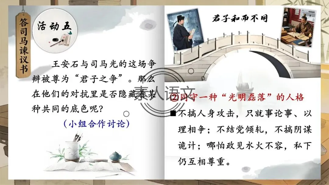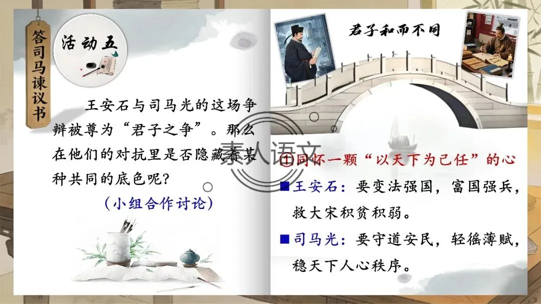活动五:王安石与司马光的这场争辩被尊为“君子之争”。那么在他们的对抗里是否隐藏着某种共同的底色呢?